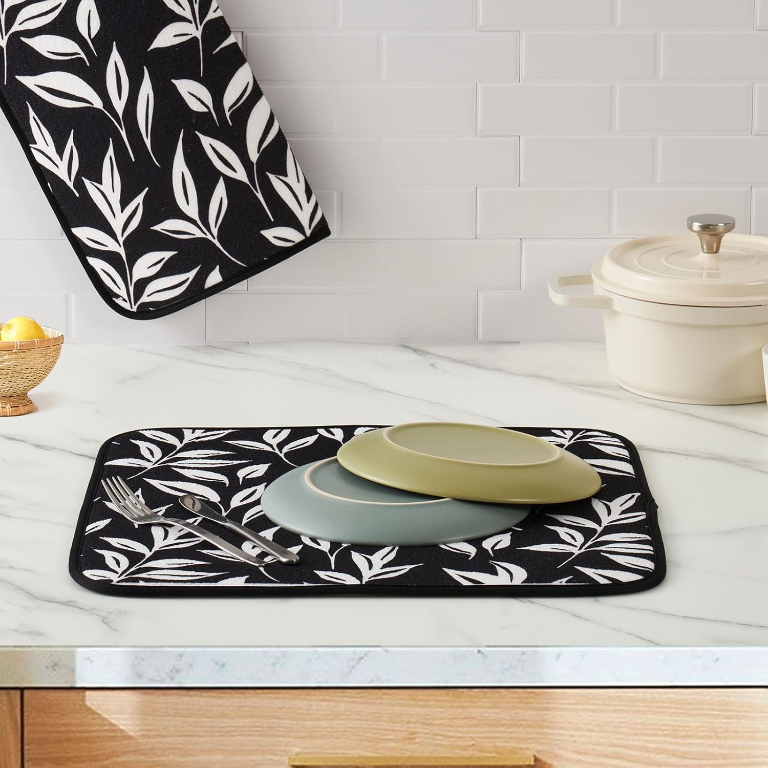 - 【Chic Dish Drying Mat】This dish drying mat features a unique design that is elegant yet simple, making it suitable for any style of kitchen counter. Available in multiple styles including boho, floral, and fruit, with eye-catching colors. Add this colorful drying mat to your kitchen to keep the countertop dry and add a touch of art to your kitchen decor.