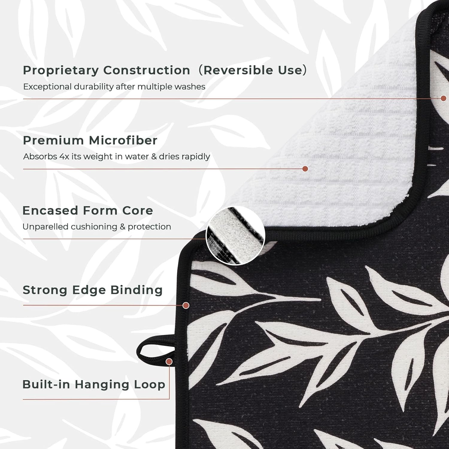 - 【Quick Absorption】This microfiber dish mat features a 3-ply design that can rapidly absorb up to 4 times its weight in water. It combines a layer of fast-drying composite sponge between two highly absorbent and durable layers of microfiber, effectively addressing the issue of dampness after dishwashing and helping to maintain tidy countertops.