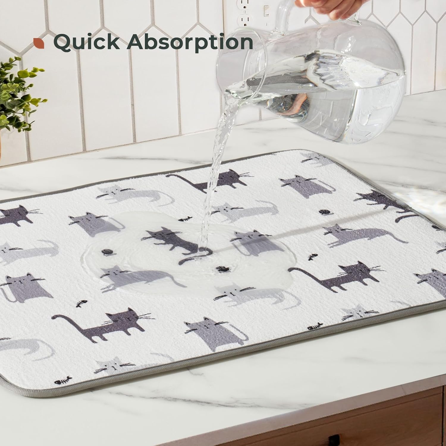 - 【Easy Maintenance & Great Home Gift】Machine washable for easy cleaning, this kitchen tableware drying pad features absorbent microfiber construction with excellent color-locking effects. It won't fade after repeated cleaning and can be reused multiple times.Great hostess gifts, housewarming gifts, and camping accessories. Decorated with personalized printed patterns, our microfiber dish drying mat will surprise your family and friends.
