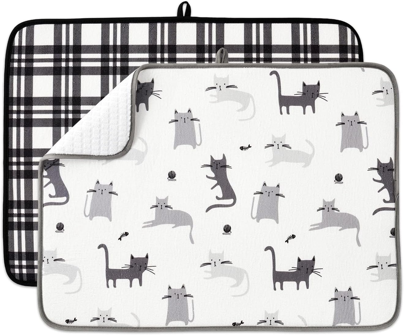 FRESHMINT Printed Dish Drying Mats for Kitchen Counter 2 Pack Absorbent Reversible Drying Mats Microfiber Kitchen Countertop Protector Dishes Drying Pad Extra Large 18"x24" Dish Mat
