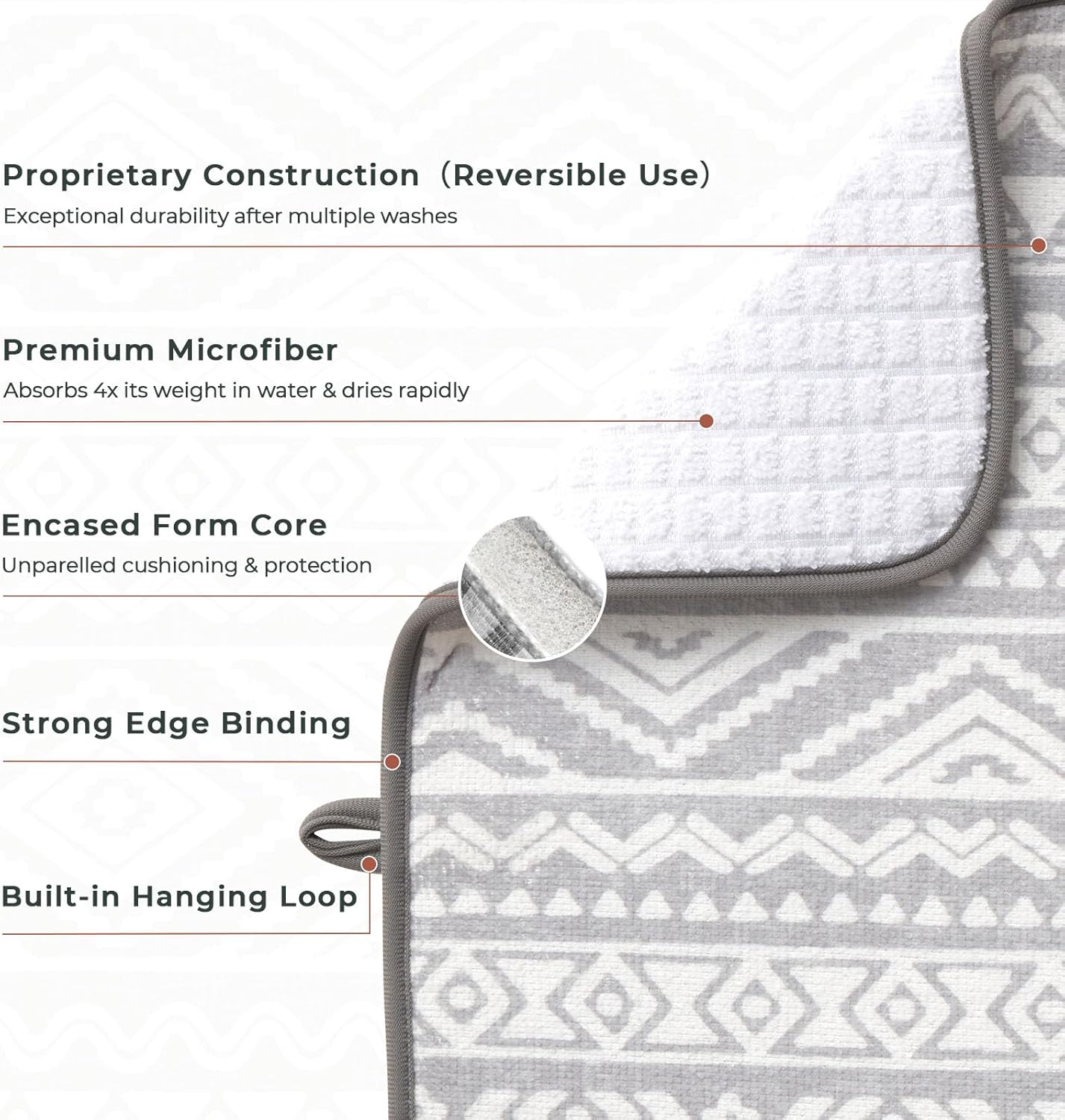 FRESHMINT Printed Dish Drying Mats for Kitchen Counter 2 Pack Absorbent Reversible Drying Mats Microfiber Kitchen Countertop Protector Dishes Drying Pad Extra Large 18"x24" Dish Mat