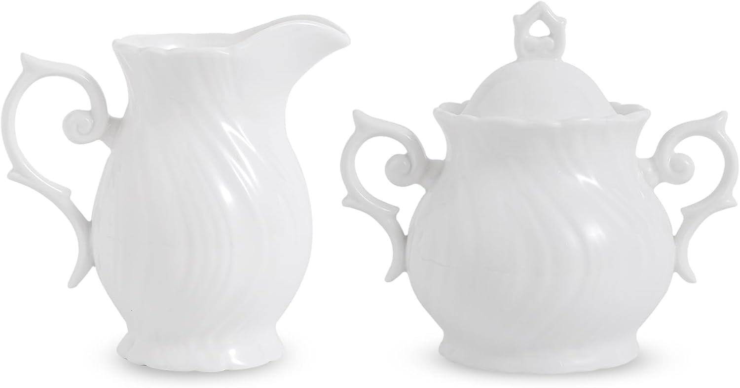 - Reasonable Size:Creamer Pitcher: 2.4" Dia x 4.5”H, capacity of about 7.8oz, Sugar Jar: 2.87" Dia x 4.8”H,capacity of about 9.4oz