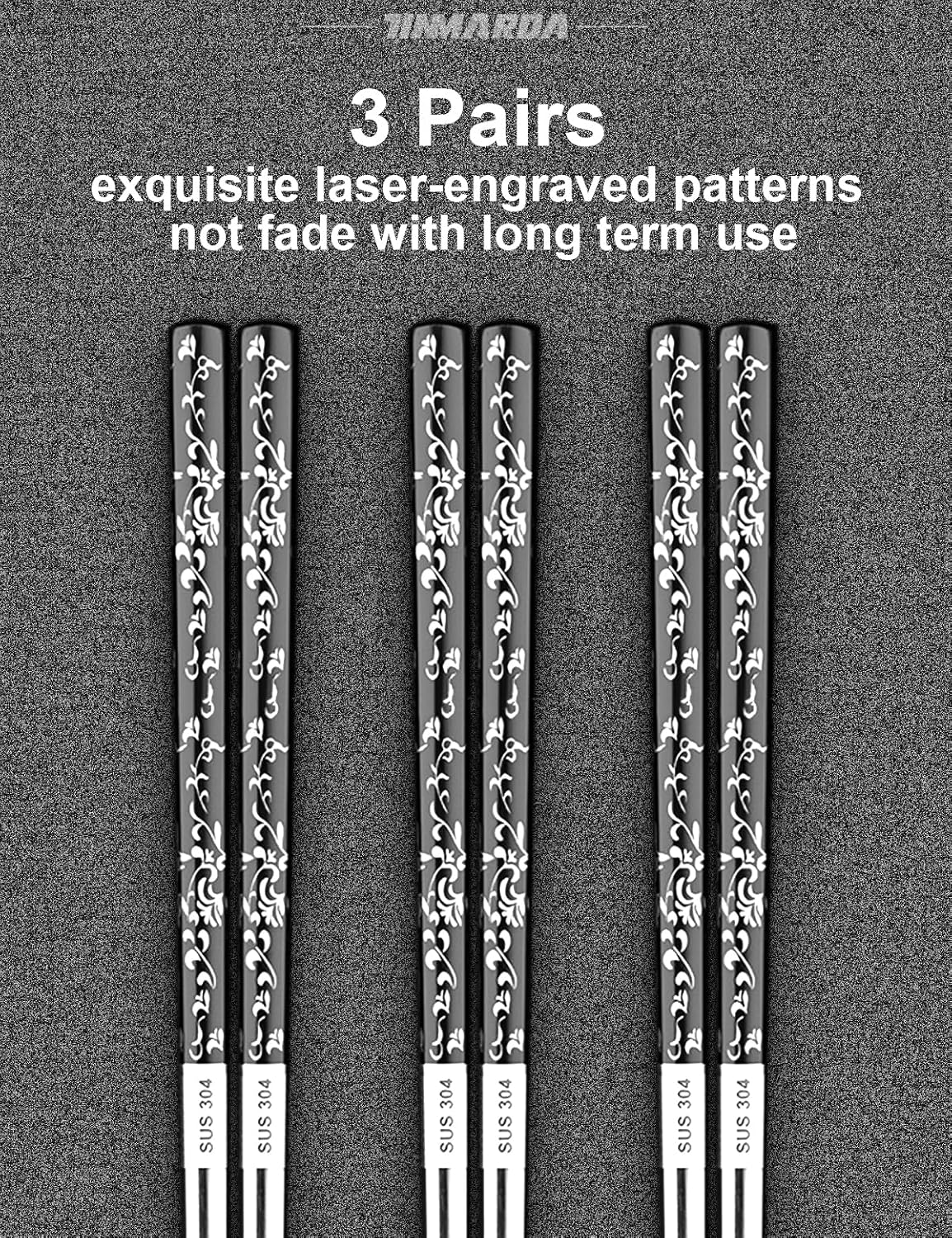 - EXQUISITE DESIGN: Chopsticks reusable with nice engraving pattern. Elegant and stylish Asian court style chop sticks. Nice titanium chopsticks make eating at home feel like a fancy restaurant experience. Spice up your meal time