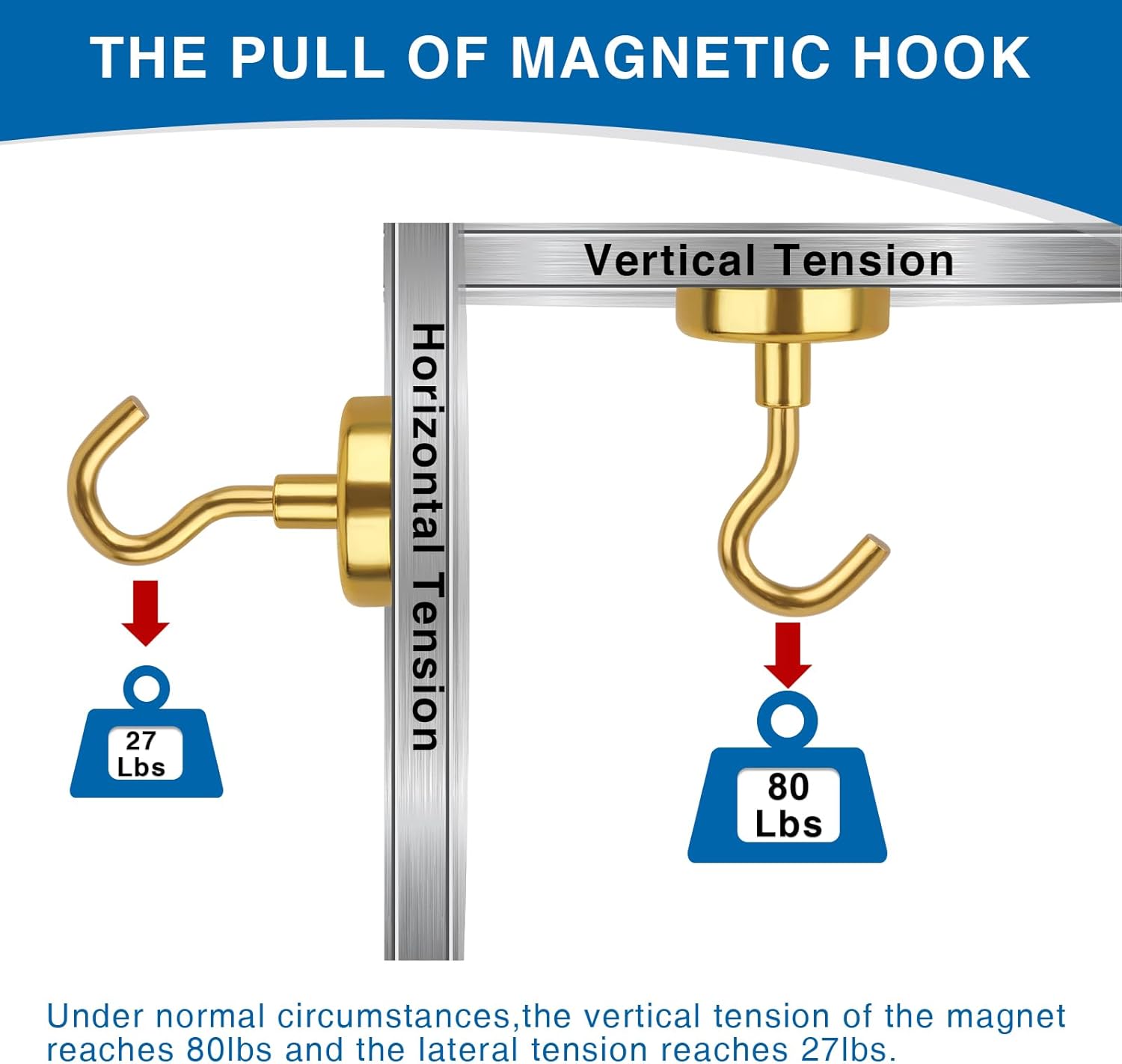 - 【STRONG MAGNETS】With our magnetic hooks, you can get over 80LBS of pulling force vertically and 25LBS horizontally. These colorful metal magnetic hooks for cruise essentials are very sturdy and perfect for hanging the items you need to make your life easier.