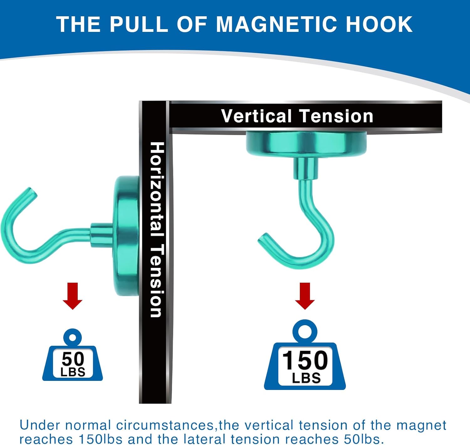LOVIMAG Magnetic Hooks for Cruise Cabins, 150Lbs Cruise Magnets, Green Magnetic Hooks Heavy Duty for Hanging, Refrigerator, Grill-4 Pack