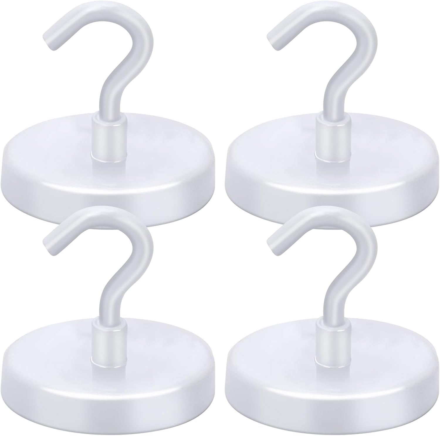 LOVIMAG Magnetic Hooks for Cruise Cabins, 150Lbs Cruise Magnets, White Magnetic Hooks Heavy Duty for Hanging, Refrigerator, Grill-4 Pack