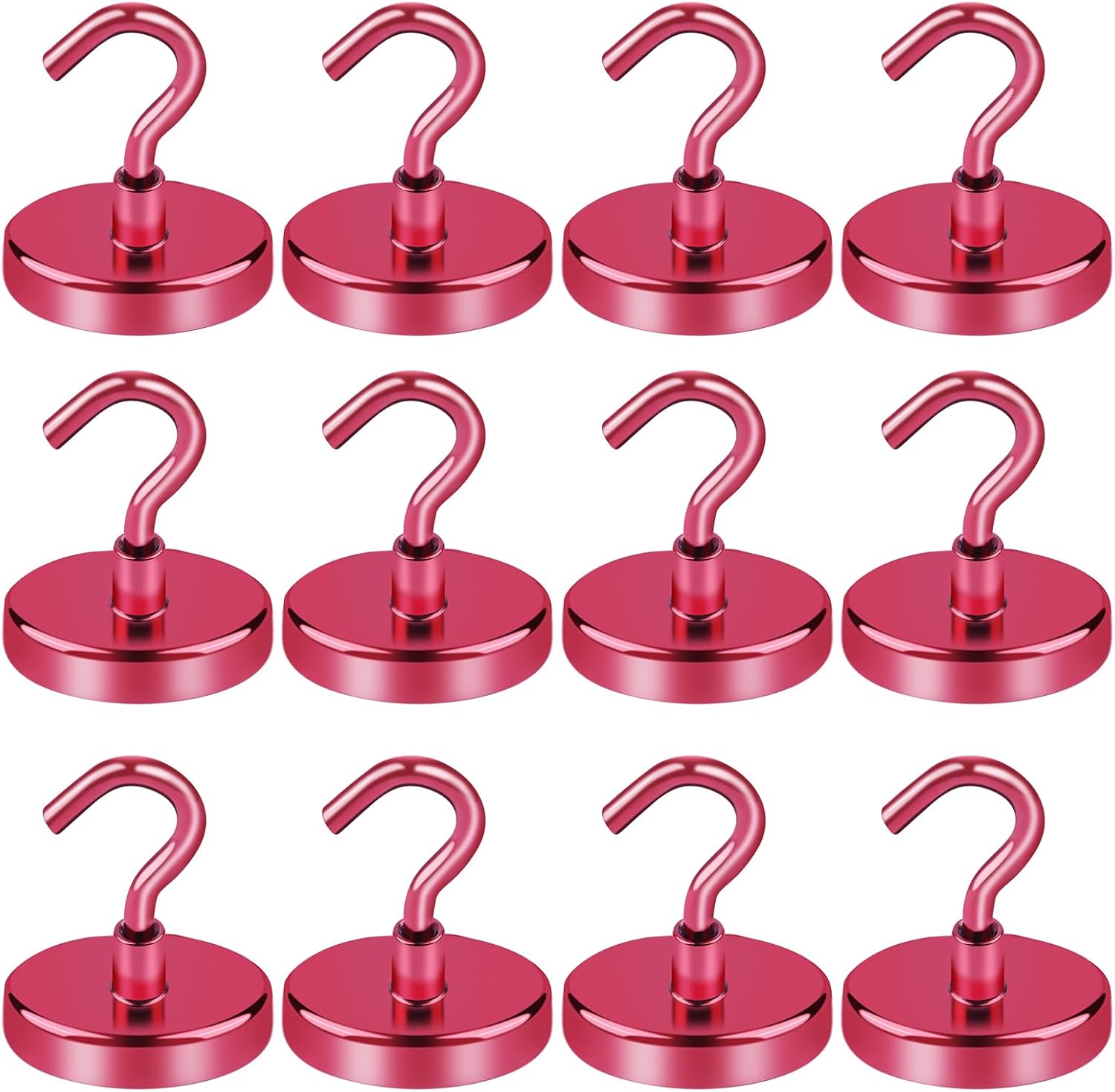 LOVIMAG Red Magnetic Hooks for Cruise Cabins, Cruise Essentials Must Haves, Cruise Magnets, Magnetic Key Holder, Strong Magnetic Hooks for Hanging, Fridge, Grill -12 Pack