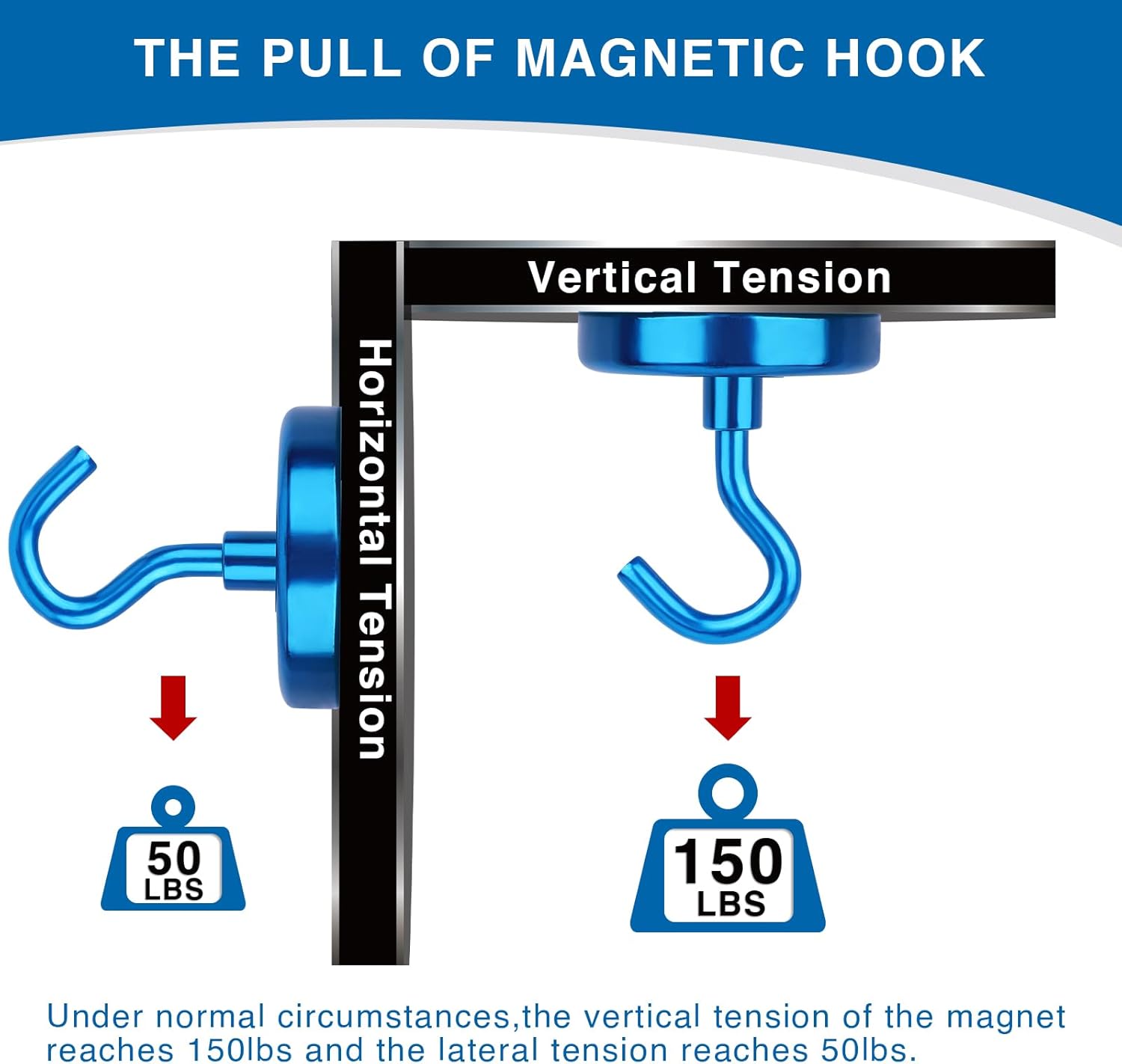 LOVIMAG Cruise Ship Essentials - 150Lbs Heavy Duty Magnetic Hooks, Blue, 12 Pack