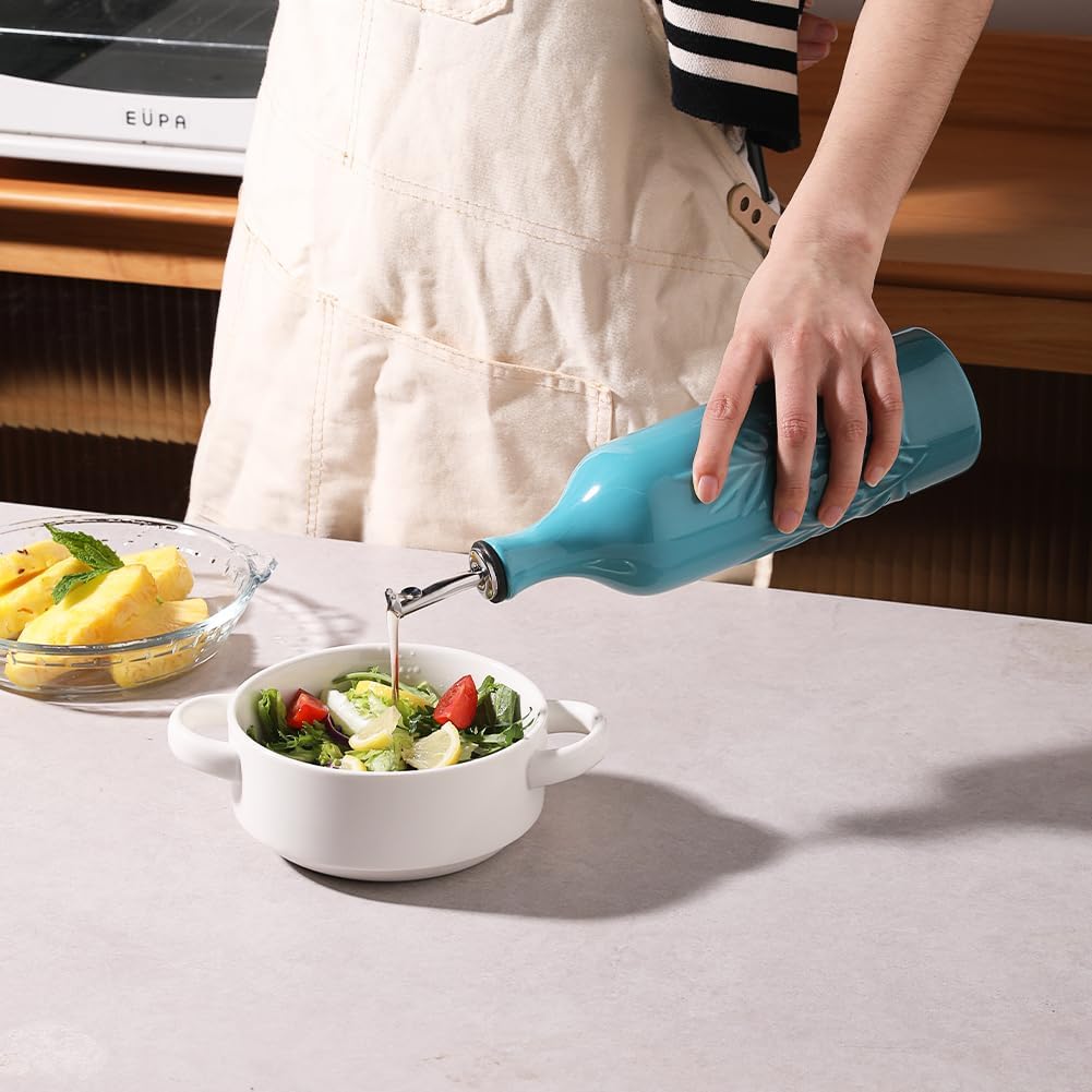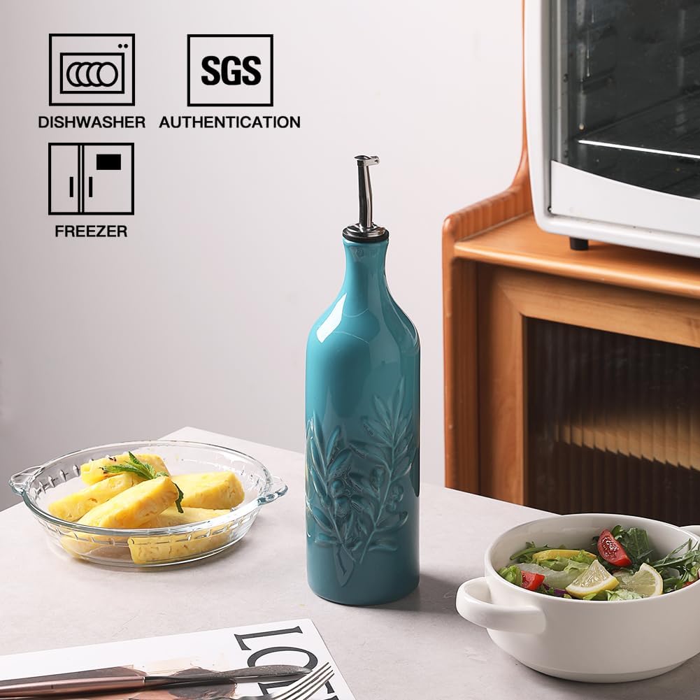 Sweejar Large Ceramic Olive Oil Dispenser Bottle, 24 Oz Relief Opaque Oil Cruet Protects Liquids, Set of 1 (Gradient Blue)