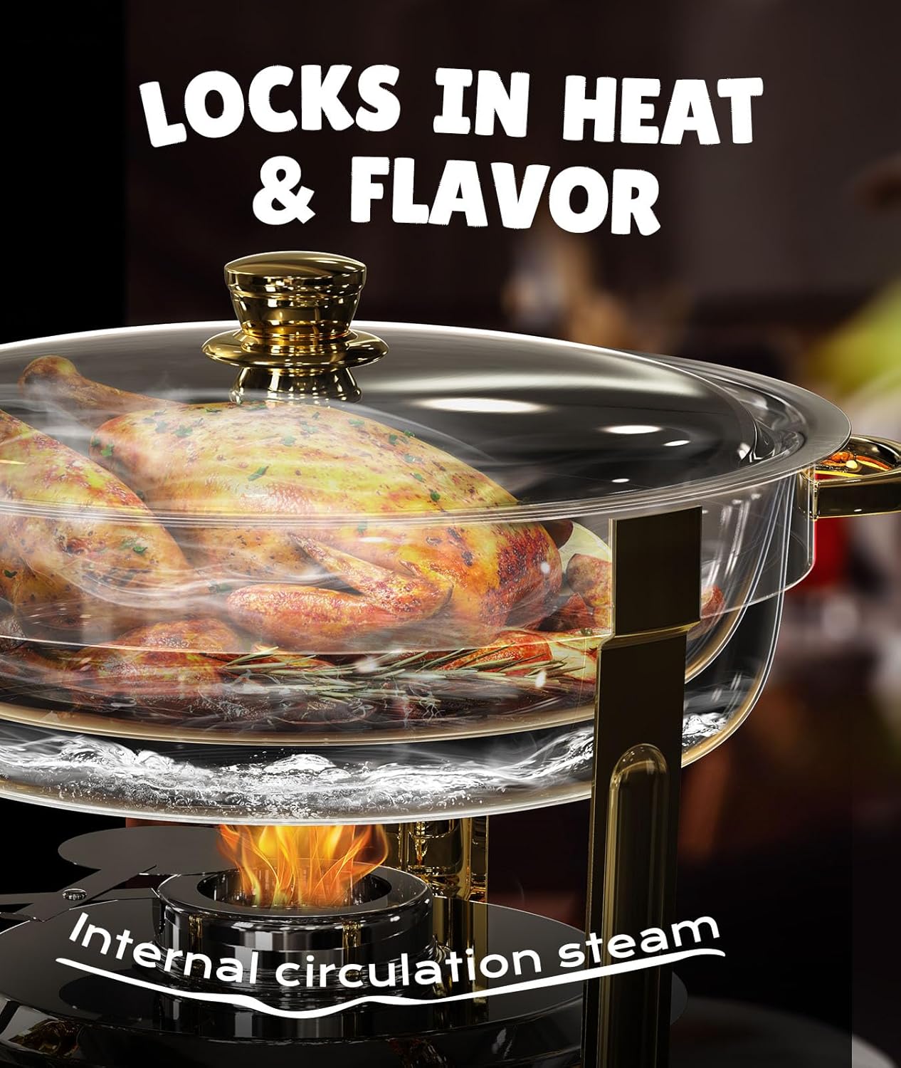 - [The ultimate chafing dish buffet set for effortless parties] Impress your guests with this exceptional buffet servers and warmers. With excellent insulation, a luxurious gold and silver color combination, innovative design, and easy assembly and storage, this versatile set is perfect for all your party needs. Elevate your hosting game with this top-notch set.