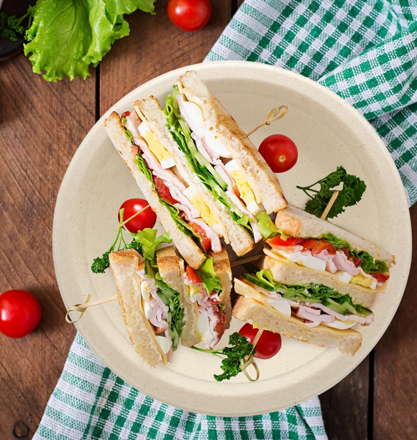 - ECO-FRIENDLY PAPER PLATE: Our disposable plates are made from recycled/repurposed sugarcane, which are 100% biodegrable for composting at easy disposal. Besides, no cutting the treesl, making such compostable plates are good for worldwide enviroment.