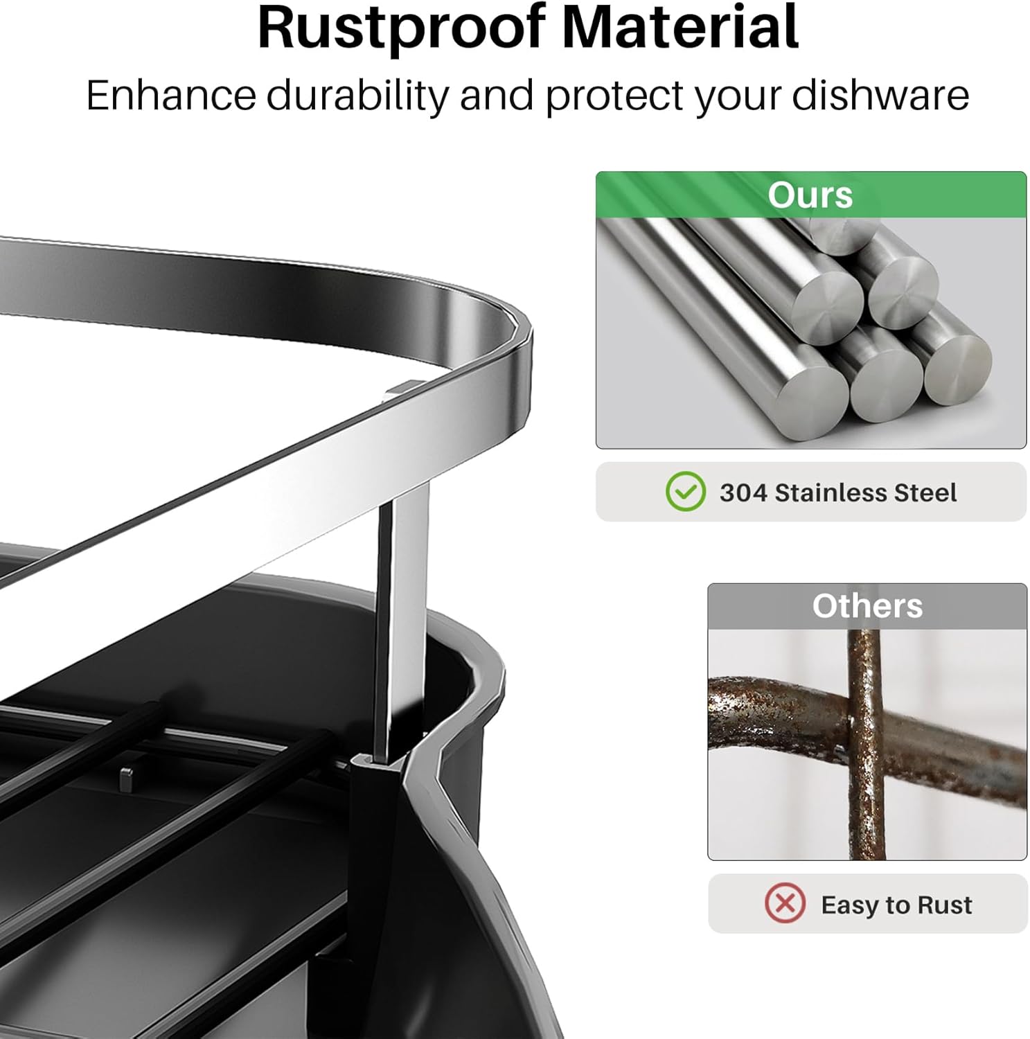 - Rustproof & Sturdy: Built with premium 304 stainless steel guardrails, black anti-rust coated wires, and a fingerprint-resistant PP drip tray, this dish drying rack resists rust and warping—even with daily exposure to water