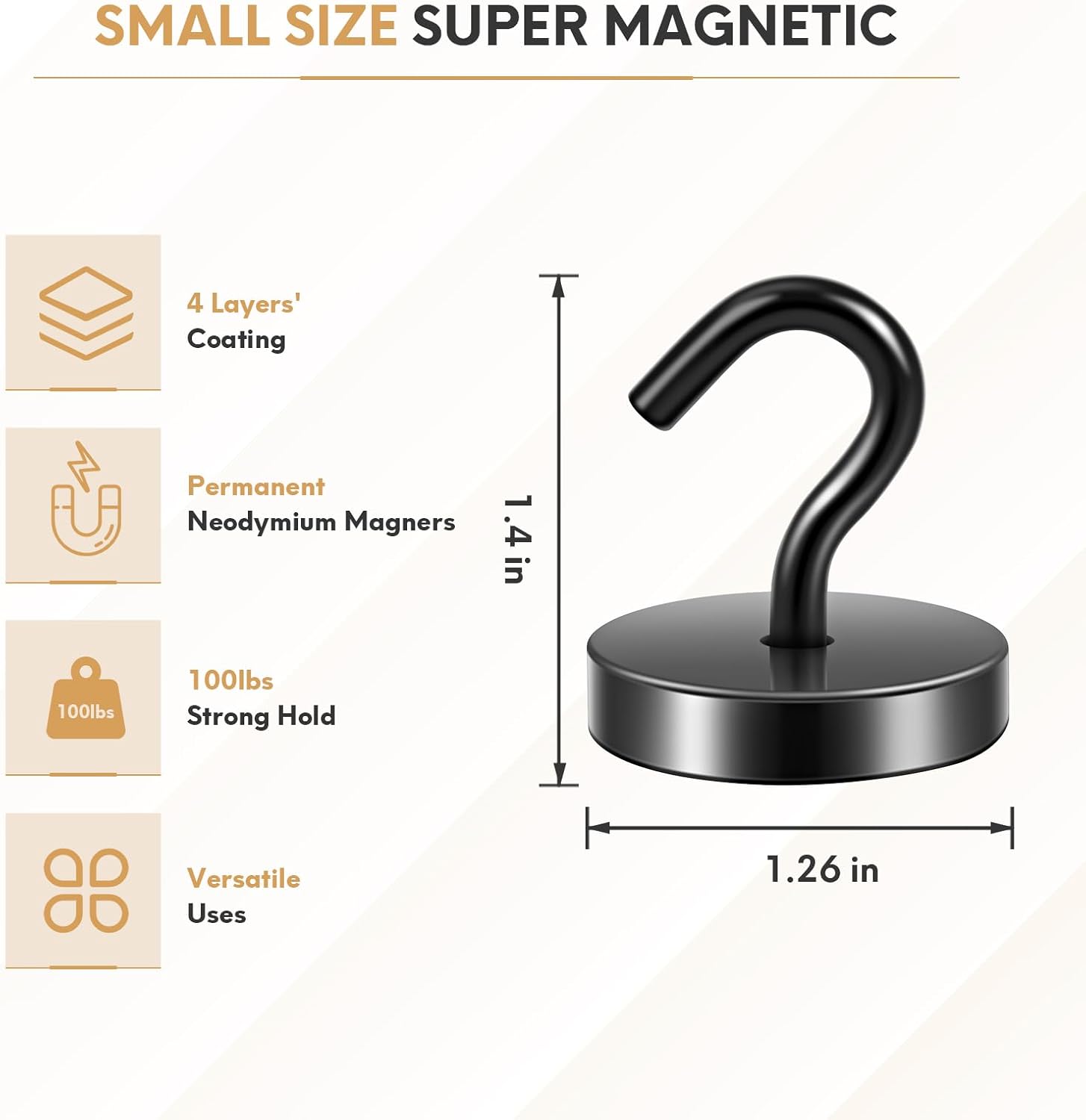 - ✔MAGIC STEEL TUBE DESIGN - Unique design of steel tube inside the base of magnetic hooks greatly increases the attractive force , especially on thin steel! It increase approximately 20% force comparing those none-tube magnets. it solves the problem of weak force on thin steel. Permanent magnetic hook with magic steel tube, strong magnetism lasts forever!