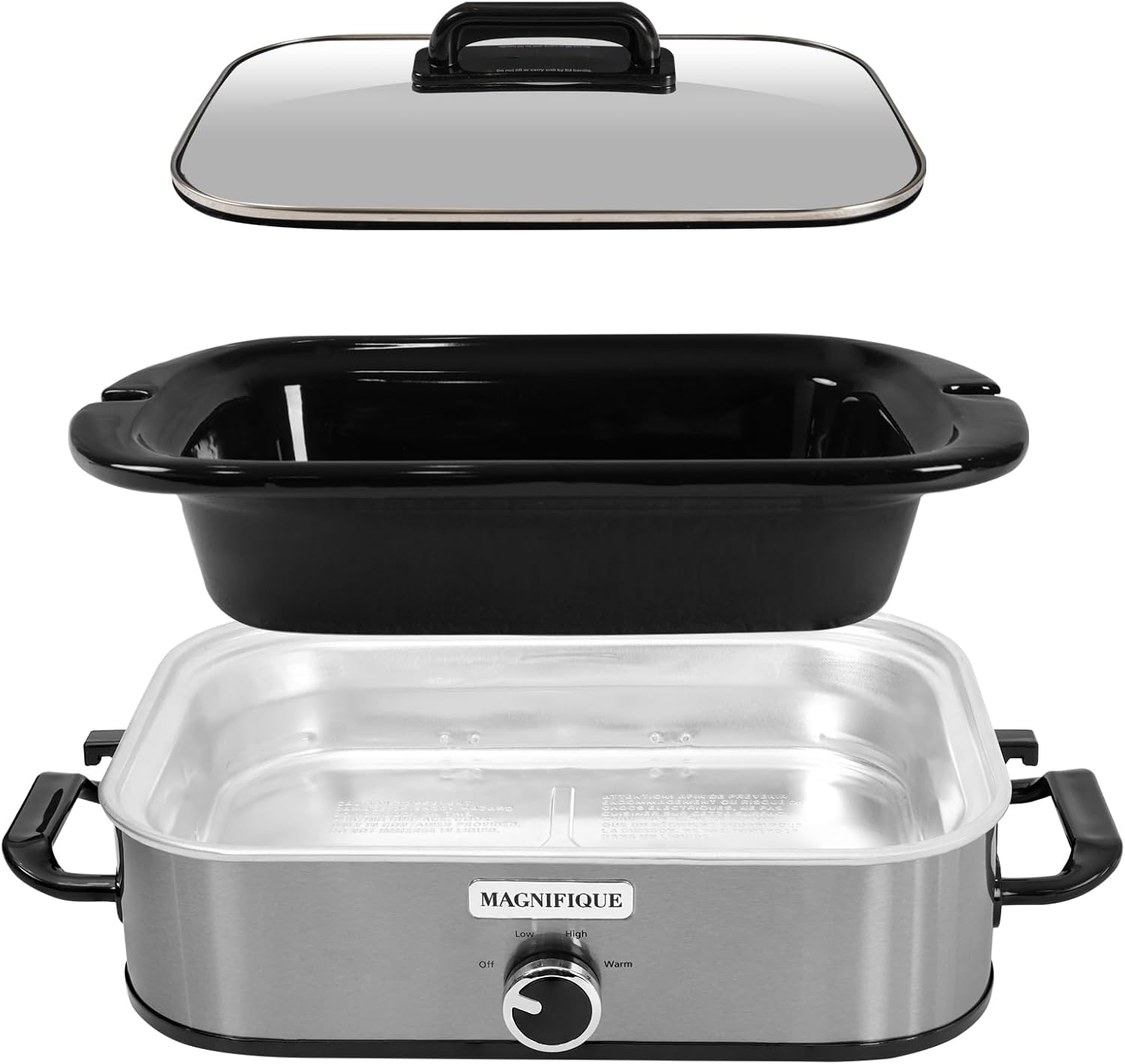 4-Quart Slow Cooker with Casserole Manual Warm Setting - Perfect Kitchen Small Appliance for Family Dinners, Dishwasher Safe Crock, Stainless Steel