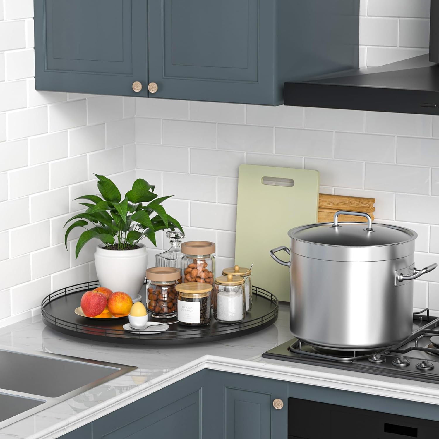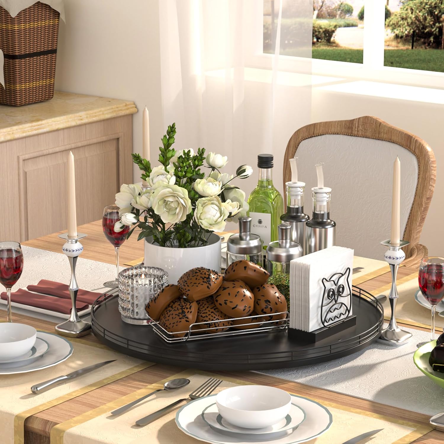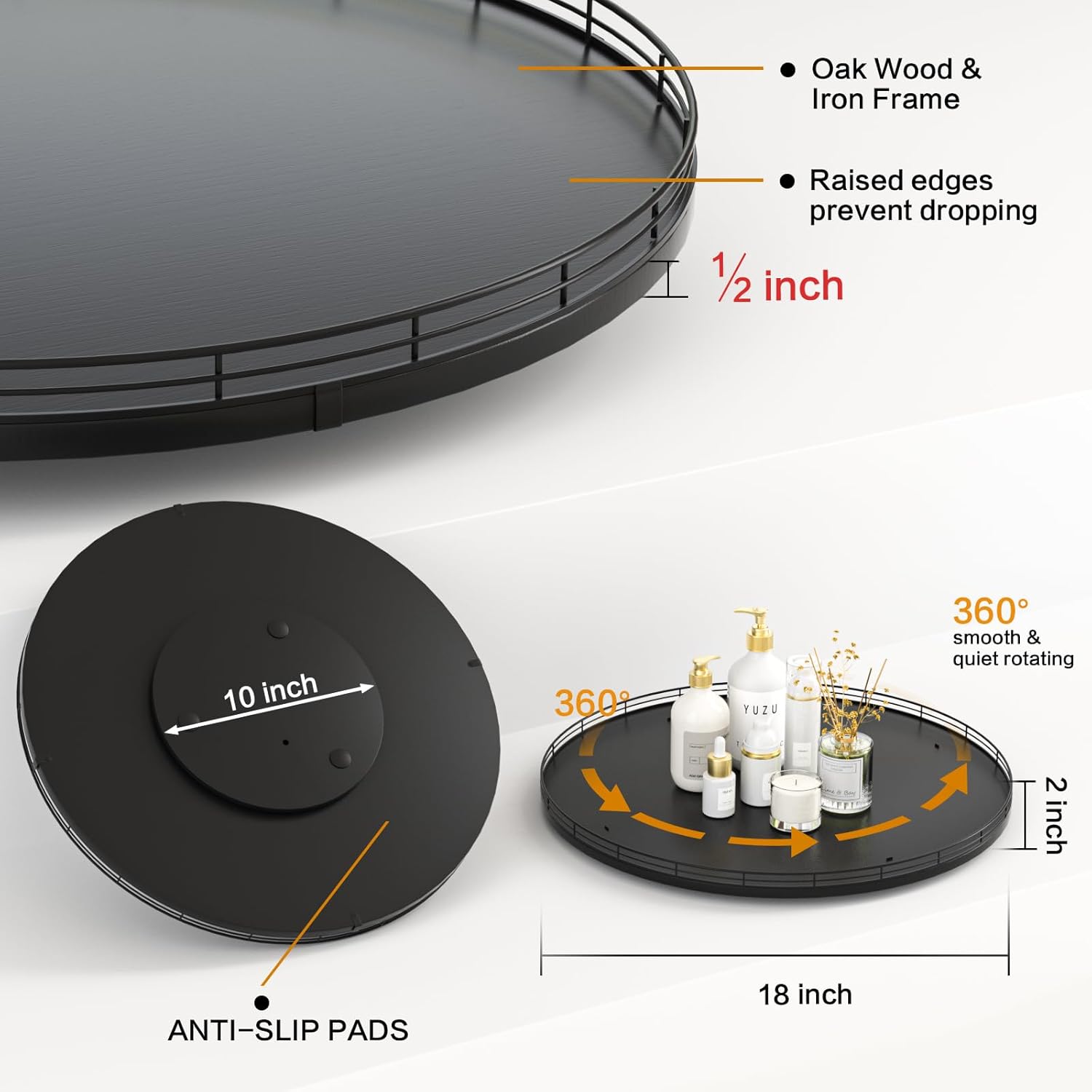 18" Oak Wooden Lazy Susan Turntable for Dining Table, Large Round Lazy Susans Organizer for Kitchen Countertop, Tabletop 360°Rotating Tray for Spice Organization and Storage Black Home Decor