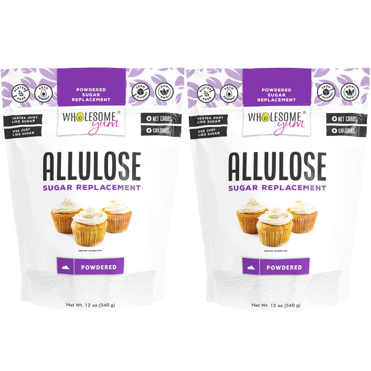Wholesome Yum Powdered Allulose Sweetener - Natural Keto Powdered Sugar Substitute - Non GMO, Zero Carb, 0 Calorie, Sugar Free, No Aftertaste - Confectioners Sugar Replacement (12 oz, 2 Pack)