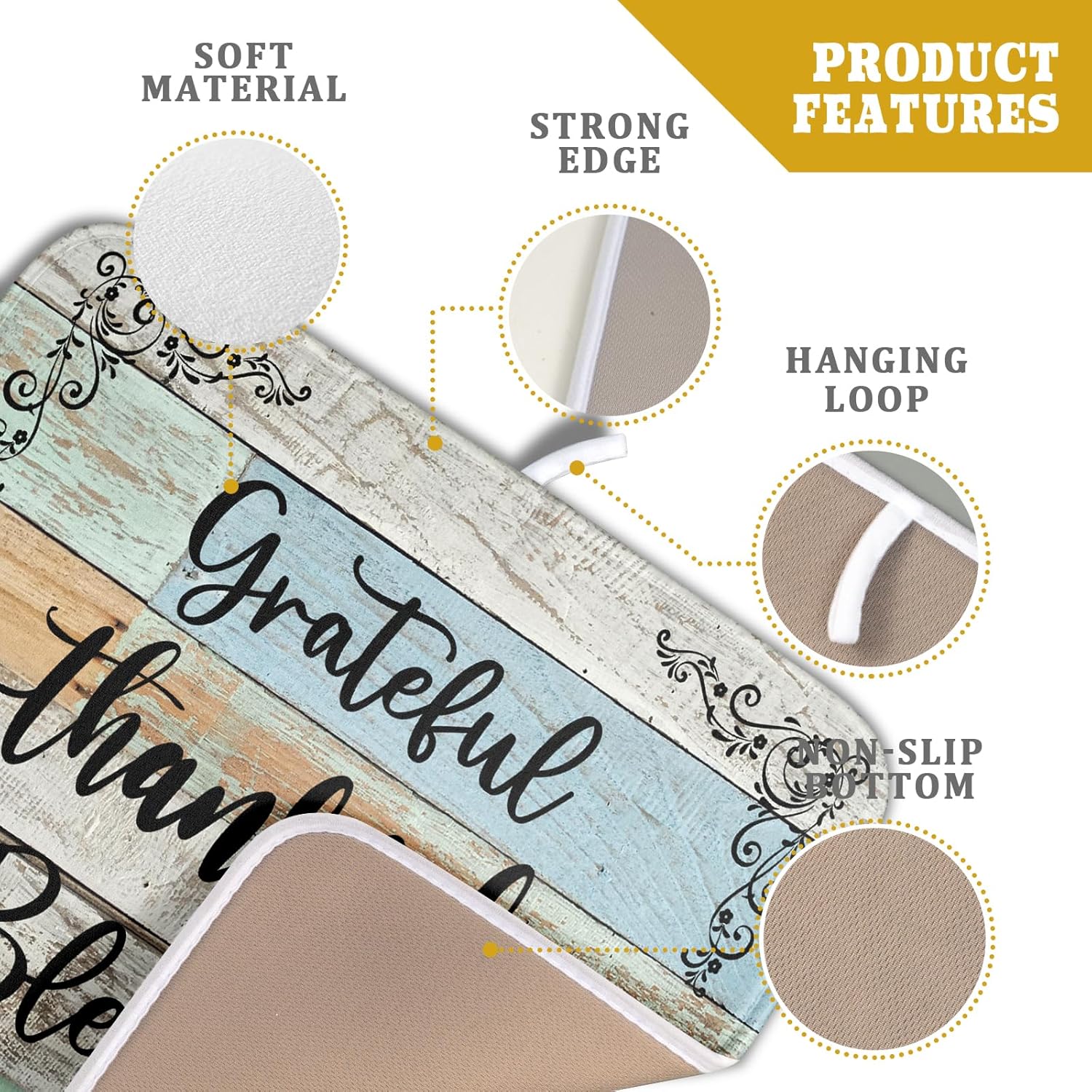 Rustic Wood Dish Drying Mat 16x18 Inch Grateful Thankful Blessed Kitchen Drainer Mats Absorbent Microfiber Rack Holder Countertop Pad