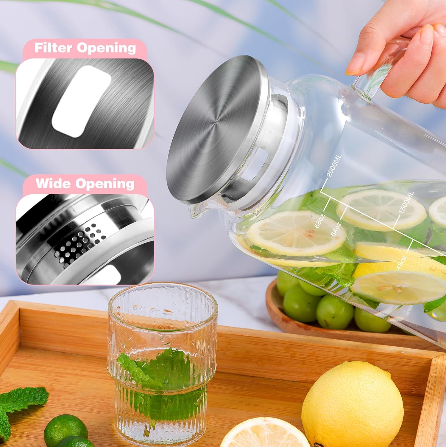 - IDEAL FOR EVERY OCCASION: The elegant crystal-clear glass design complements any kitchen decor, adding a touch of sophistication to your countertop. Whether you're hosting a family gathering, managing a restaurant, or simply craving a refreshing glass of iced tea, this pitcher is tailored to meet your needs. Elevate your beverage-making experience with our premium pitcher, designed for quality, convenience, and style.
