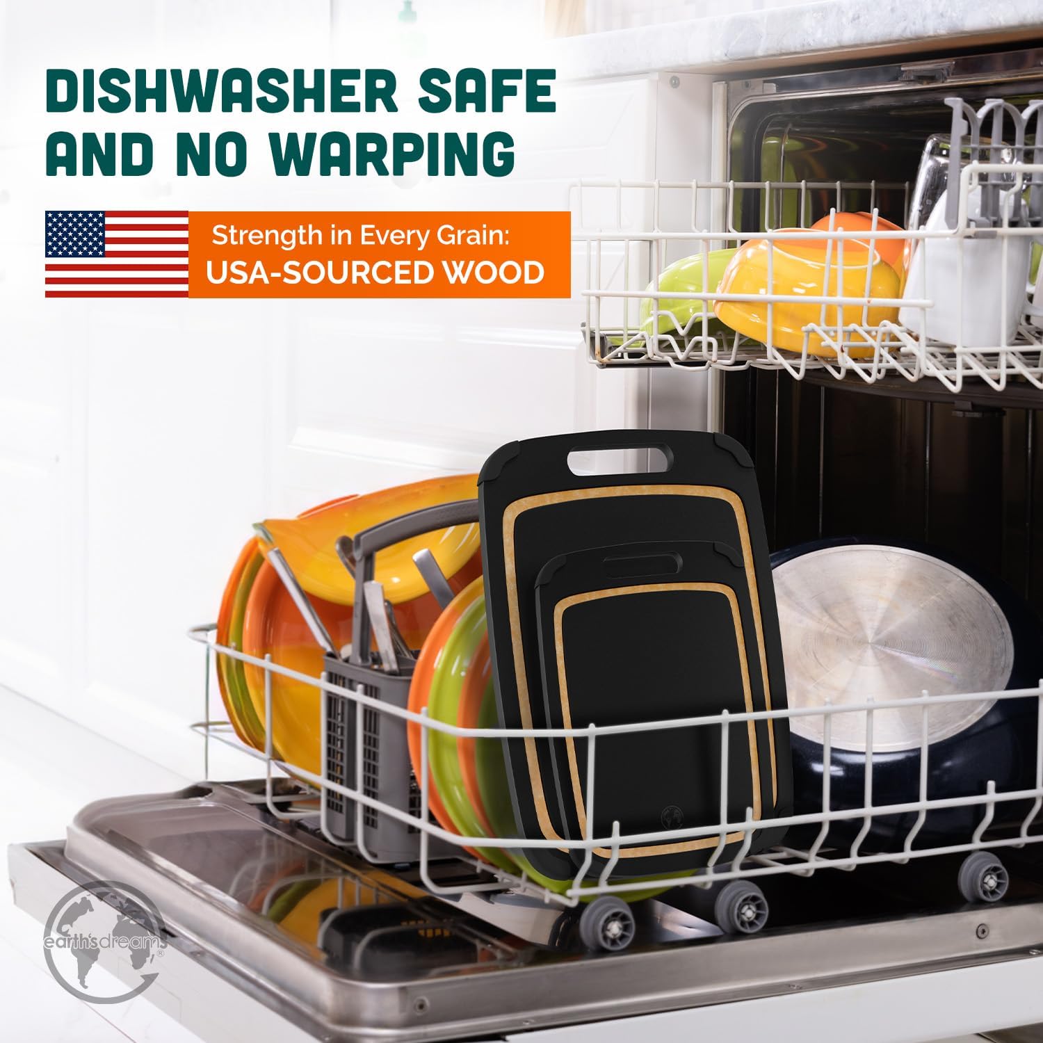 Earth’s Dreams Wood Cutting Board Set 3-Piece: Small, Large & Extra Large - Charcuterie Board, Non-Plastic, Non-Toxic, Heavy-Duty, Dishwasher Safe (Black/Tan)