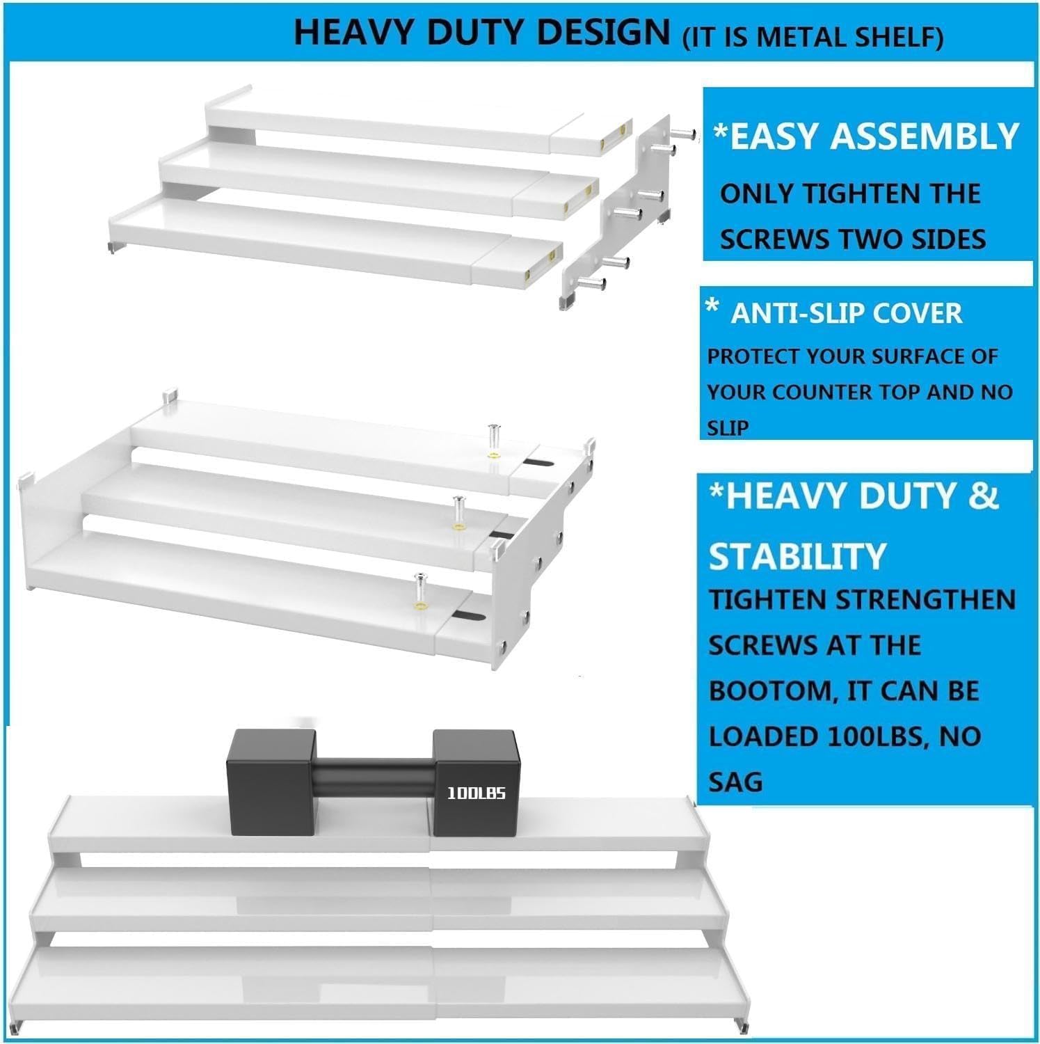 Expandable Spice Rack Storage organizer with 3-Tier step shelf cabinet,seasoning racks organizion.Great for Kitchen countertop shelves,Pantry and more(2Packs/White)