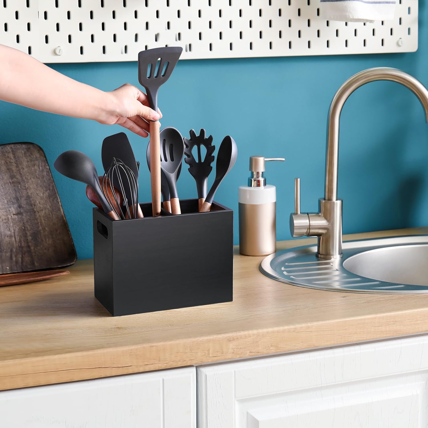 - Sturdy and Easy Maintenance - Crafted from durable pine wood, this utensil organizer boasts a sturdy structure, resistant to cracking and warping for long-lasting use. Maintain its pristine condition by wiping it with a damp cloth a few times a week