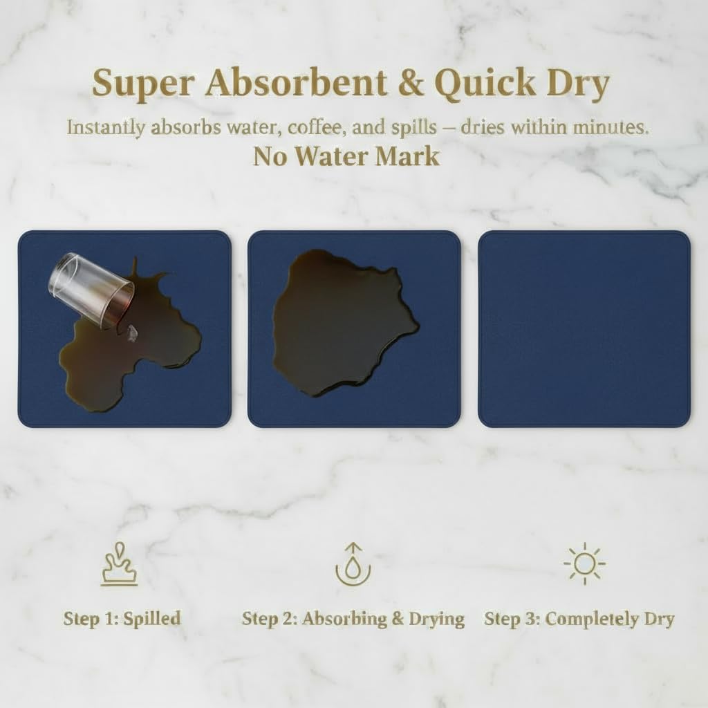 Dish Drying Mat Super Absorbent – 24" x 16" Coffee Mat for Countertops – Non-Slip Drying Mat for Kitchen Counter – Easy to Clean Water Absorbent Mat – Large Dish Drying Mats (Navy Blue)