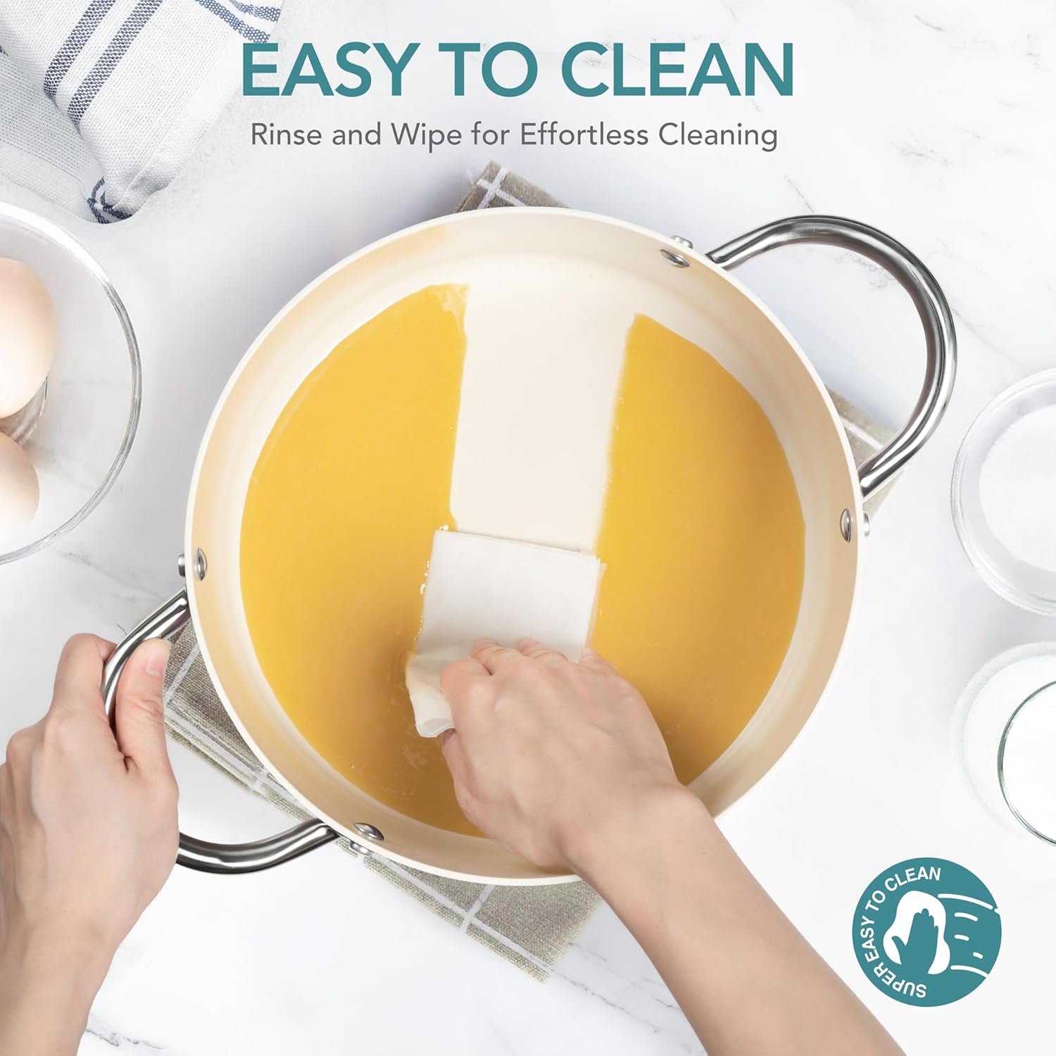 - Superior Nonstick Performance: The advanced nonstick coating prevents food from sticking, making cleaning a breeze and reducing oil use by 90%. Its durability ensures long-lasting nonstick performance, maintaining its quality over time. Hand washing recommended.