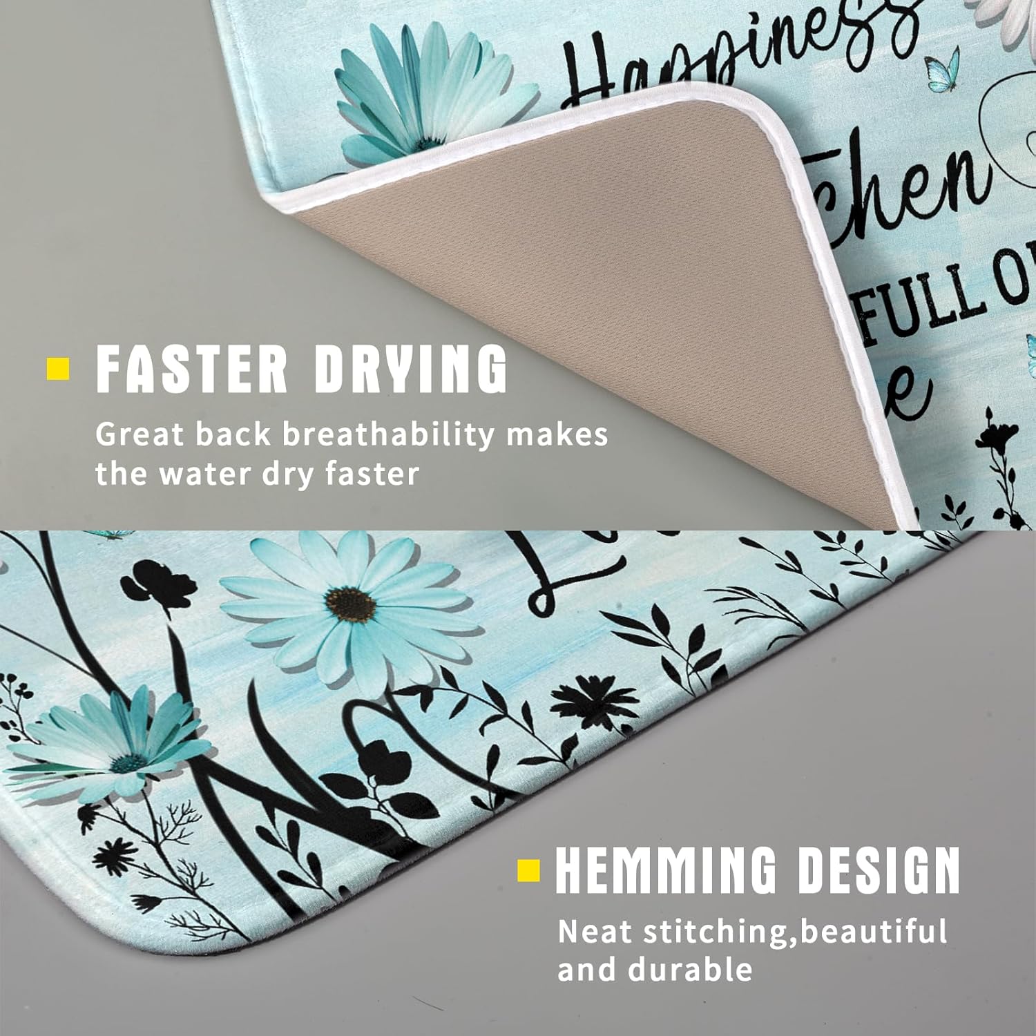 Blue Daisy Dish Drying Mat 16x18 Inch Love Kitchen Absorbent Microfiber Washable Fast Drying Pad Dishes Rack Mat for Kitchen Counter