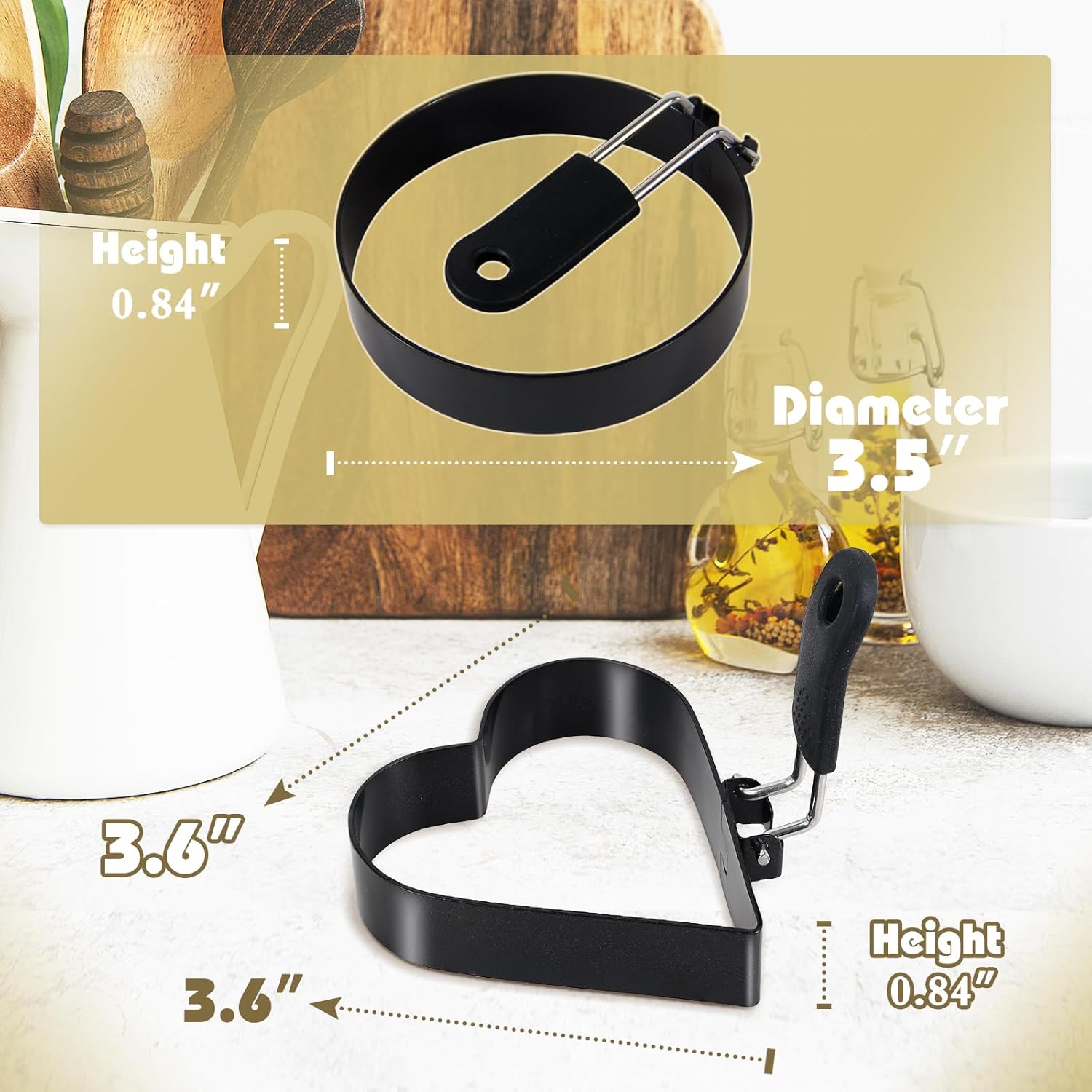 Round+Heart Egg Rings Set with Silicone Handle, Stainless Steel Egg Cooking Rings,Nonstick,For Frying Eggs and Egg Mcmuffins, Egg Mold For Breakfast