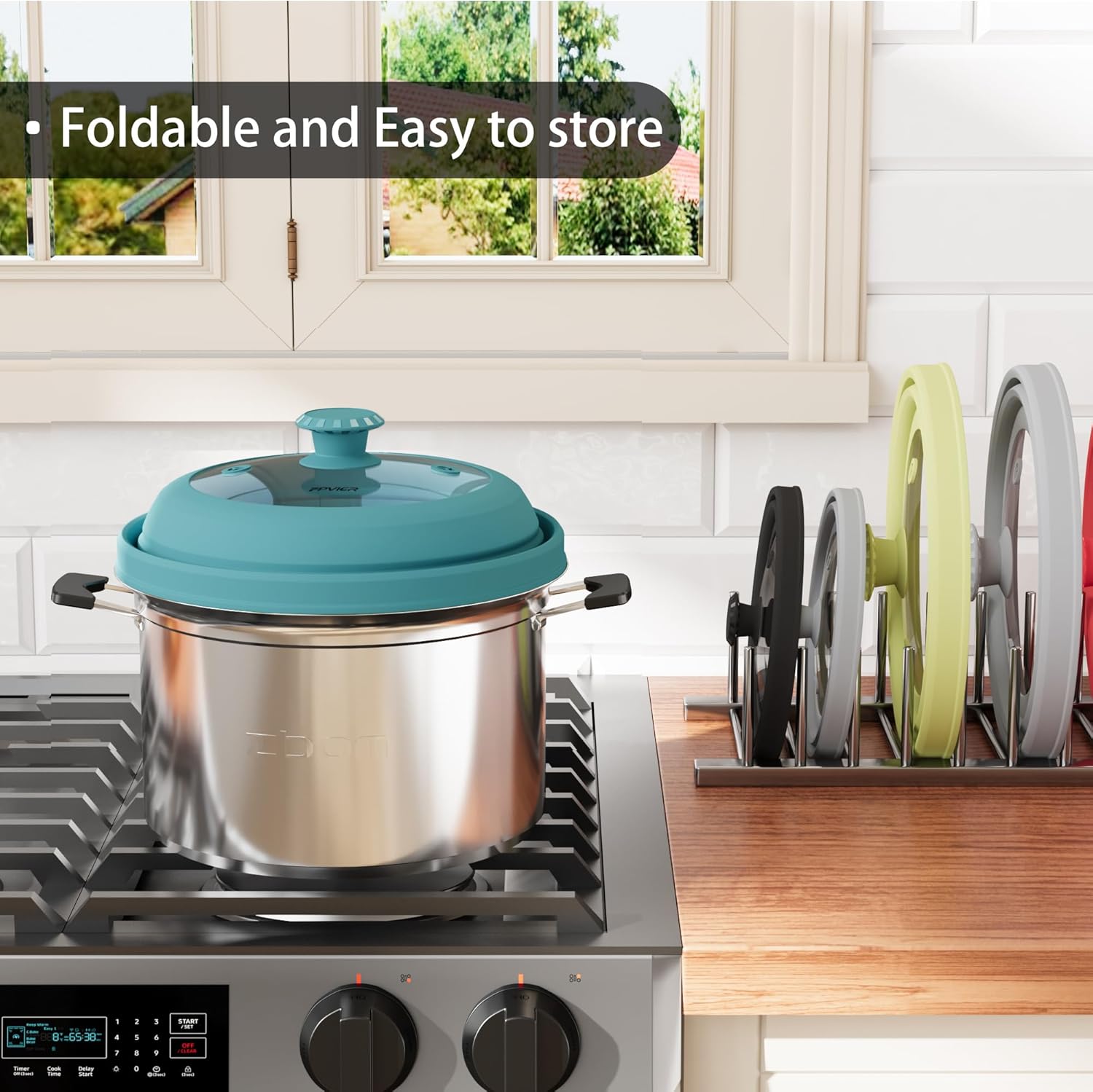 - 【SILICONE HANDLE】 The silicone handle on the top is anti-scalding and safe, so you can open it without spending a lot of time waiting for it to cool down without having to wait for it to cool