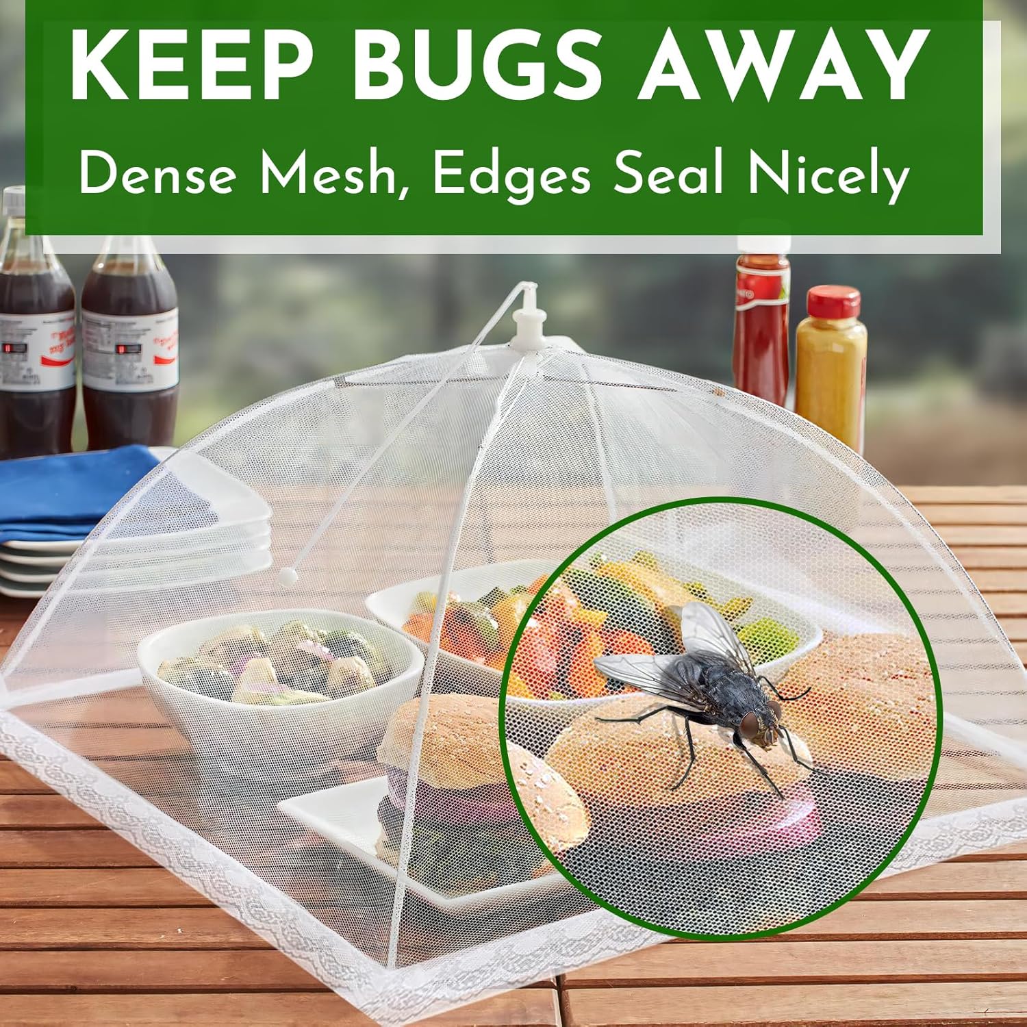 Mesh Food Covers for Outside - Upgraded 6 Pack Large 17x17 in Food Tent Food Cover Outdoors Party Collapsible Picnic Nets Umbrella Mesh Screen Pop Up Food Dome (White)