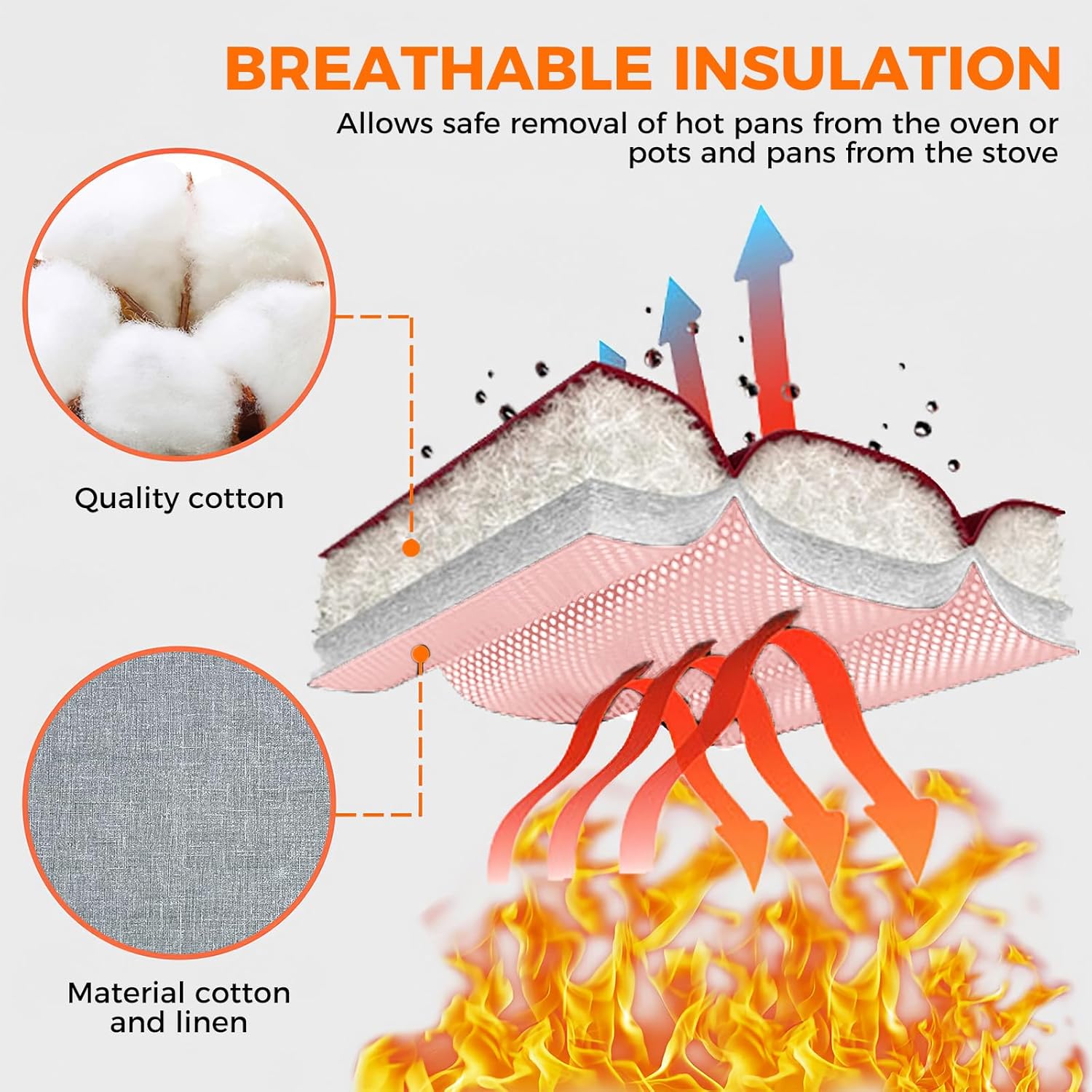 - 【Heat Resistant Up to 500 °F】Our high-quality oven mitts and pot holder set is heat-resistant up to 500 °F. Whether you're taking a casserole dish out of your oven, taking a pan out of your oven, or taking care of your hot grill, you can be sure that your hands are reliably protected from burns by our oven mitts.