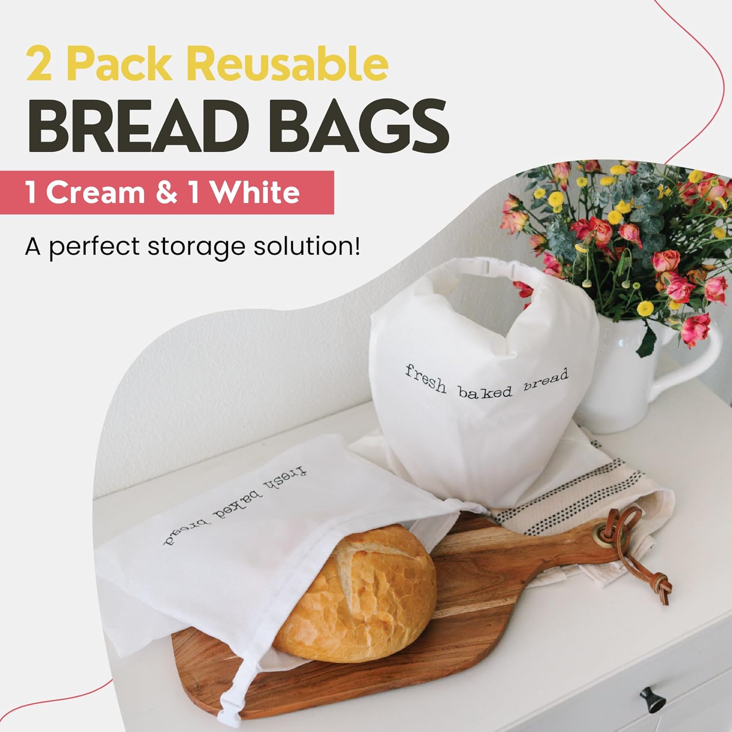 - 𝐏𝐨𝐫𝐭𝐚𝐛𝐥𝐞 𝐅𝐨𝐨𝐝 𝐆𝐫𝐚𝐝𝐞 𝐁𝐫𝐞𝐚𝐝 𝐋𝐨𝐚𝐟 𝐁𝐚𝐠: Keep your bread fresh with our pack of 2 reusable bread storage bags. These plastic farmhouse-style bread bags are perfect for fresh bread storage. Use them as homemade bread storage bags or bread bags for sourdough, they help preserve taste and freshness while adding a charming touch to your countertop.