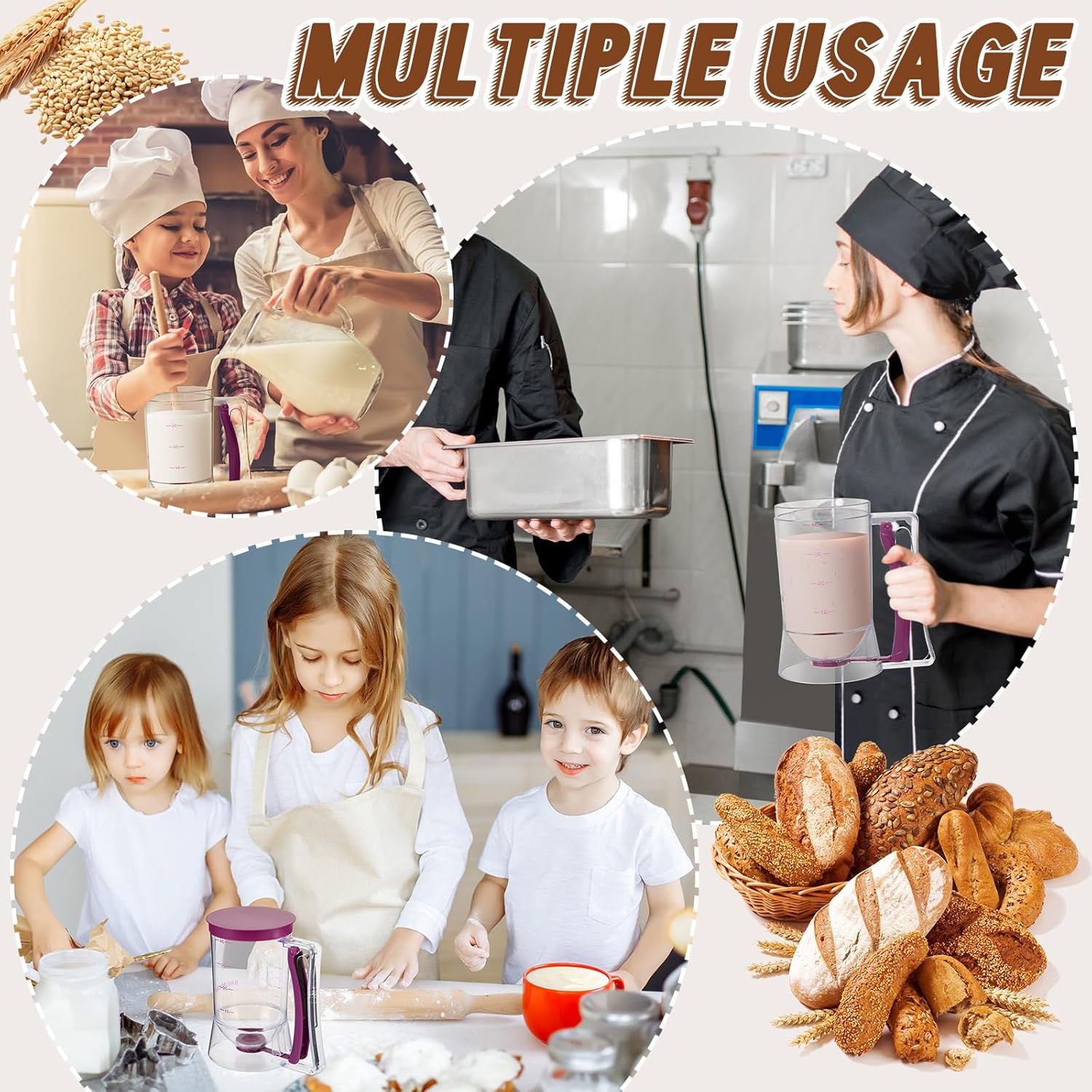 - Innovative Batter Dispensing System: our 2 pcs cupcake batter dispensers come with measurement labels and have a capacity of 900 ml, which is 4 cups; And they are made of plastic, with a wide mouth design that makes filling a breeze, and the quick close allows beginners easy to use