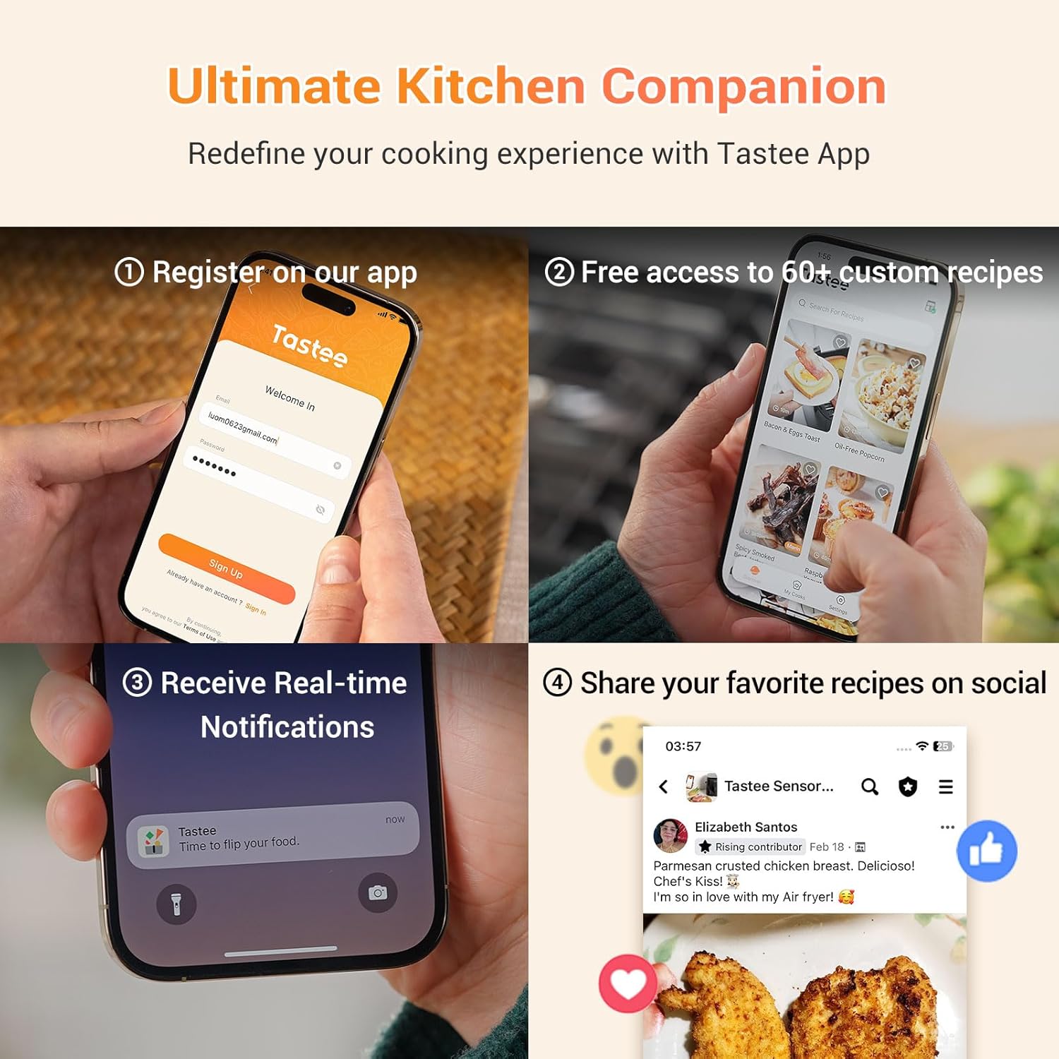 Tastee Air Fryer, 8-in-1 Compact 5.5QT AirFryers, 450°F Digital Airfryer Dehydrator with Dual-sensor Smart Probe, 24 Presets One-touch Cooking, In-app Recipes with Window, Dishwasher-safe & Non-stick
