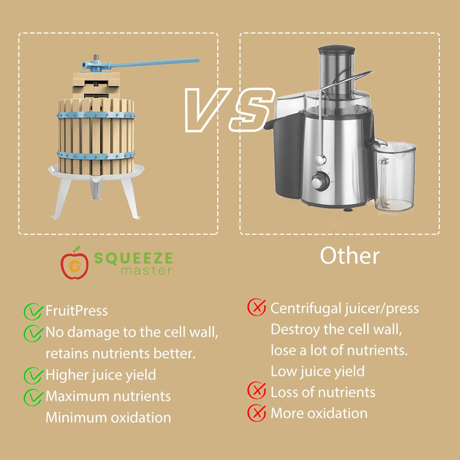 - Higher Juice Yield - Thicker press plate & Large area ,Larger Stressed Area,More thorough press, Higher Juice Yield.