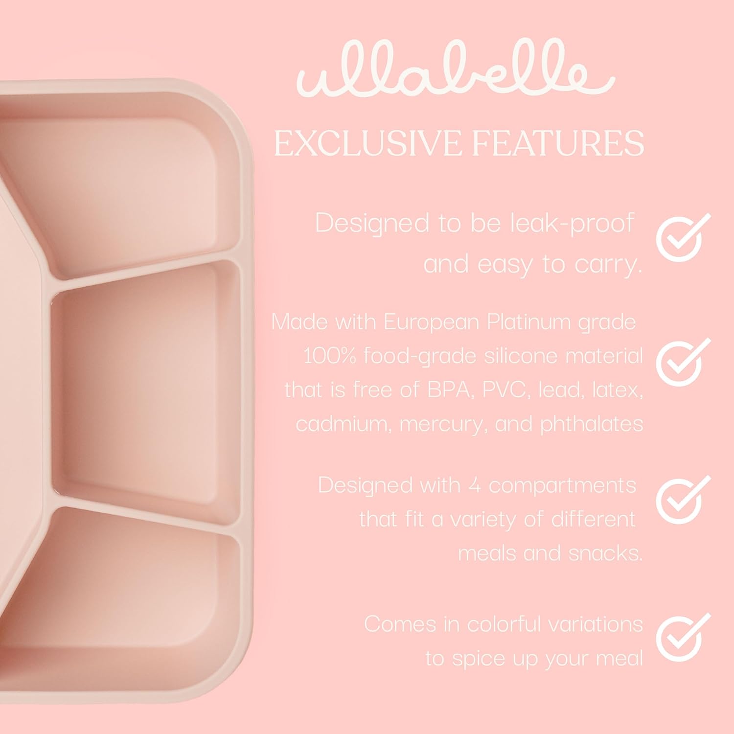 Ullabelle Leak Proof Bento Box Food-Grade Silicone Bento, BPA, Phthalate, Lead, & PVC Free - Bento Lunch Box for Daycare, Kids, & Adults - Leak Resistant Sets With Lids Snack Box Container (Beige 4)