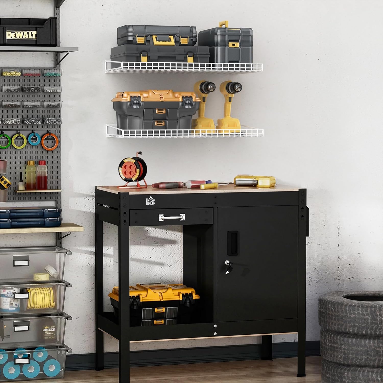 - Heavy-Duty Construction: Garage Shelving is constructed with high-quality materials, ensuring durability and stability. The heavy-duty design can bear a load capacity of 100 lbs for each wall shelf, making them ideal for storing bulky items such as power tools, paint cans, or gardening supplies