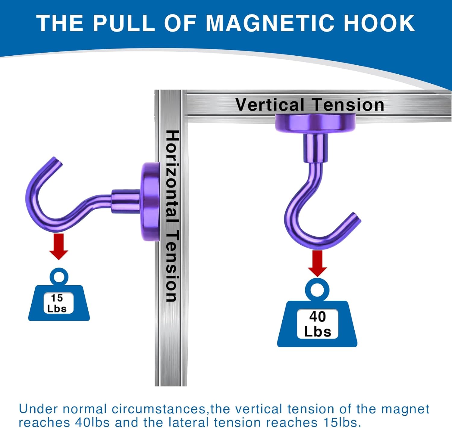 - 【MAGNETIC HOOKS】With our magnetic hooks, you can get over 40LBS of pulling force vertically and 15LBS horizontally. These colorful metal magnetic hooks for cruise essentials are very sturdy and perfect for hanging the items you need to make your life easier.