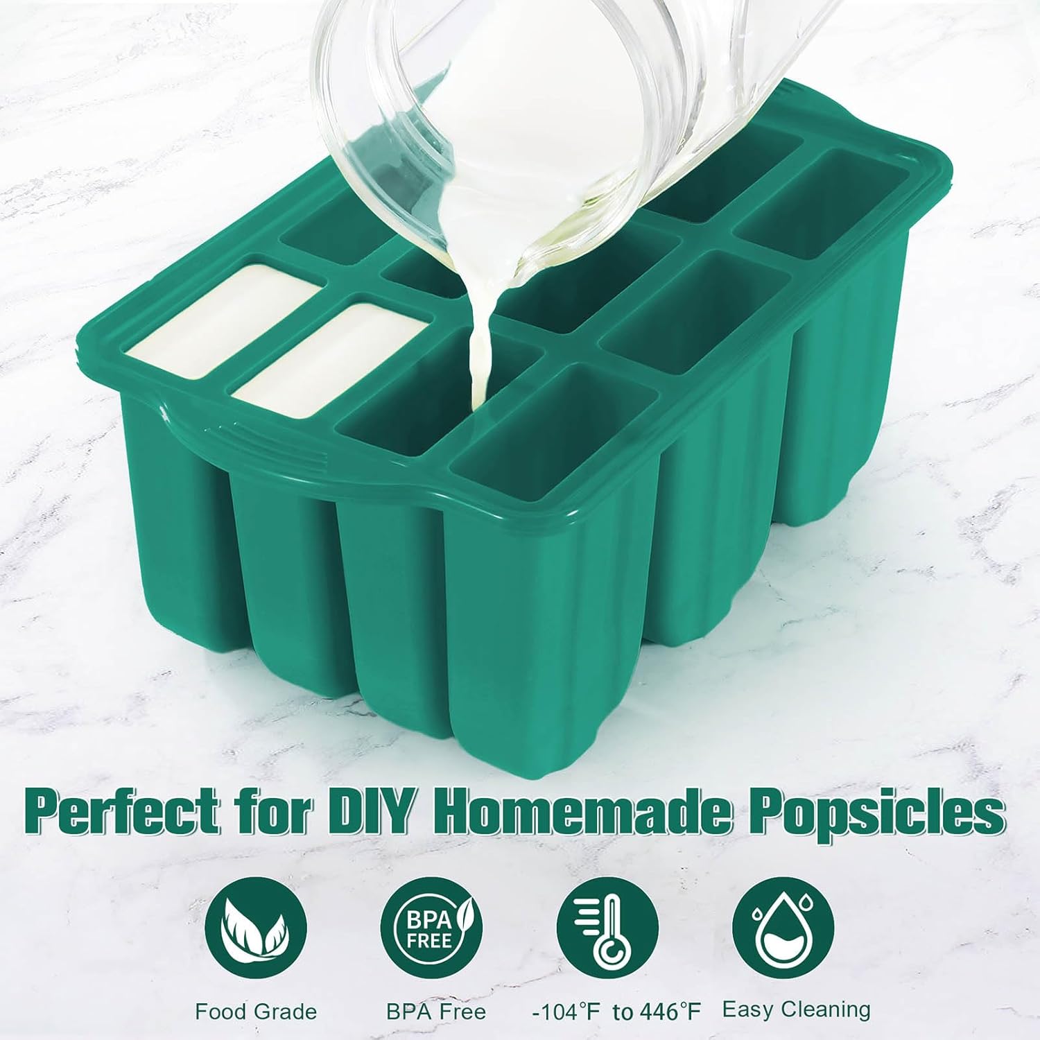 - 🍦【Elevated Quality, Everyday Details】Made of high-quality food-grade silicone material, free from BPA components, ensuring safety and tastelessness, suitable for making various cold drinks and desserts. The mold cavity size is approximately 3.35 inches x 2 inches x 0.87 inches, with a capacity of up to 3.05 ounces, meeting the needs of adults' appetites while also accommodating children's small hands for easy grasping, allowing for the customization of various flavors of large-capacity popsicles.
