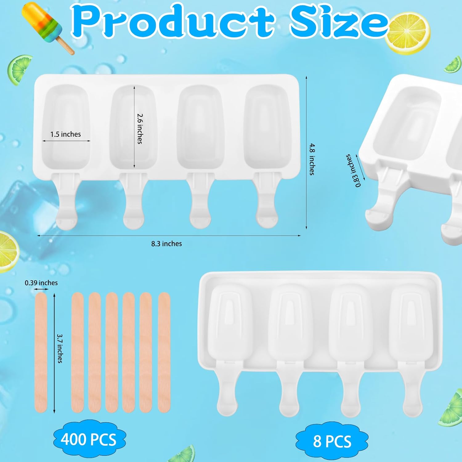 - Perfect Combination: you will receive 8 pieces silicone popsicle molds and 400 pieces wooden sticks, enough to meet your daily use and replacement, this innovative and perfect combination of 4 cavity popsicle molds makes it easy to make multiple popsicles at once, perfect for making delicious and refreshing homemade frozen foods
