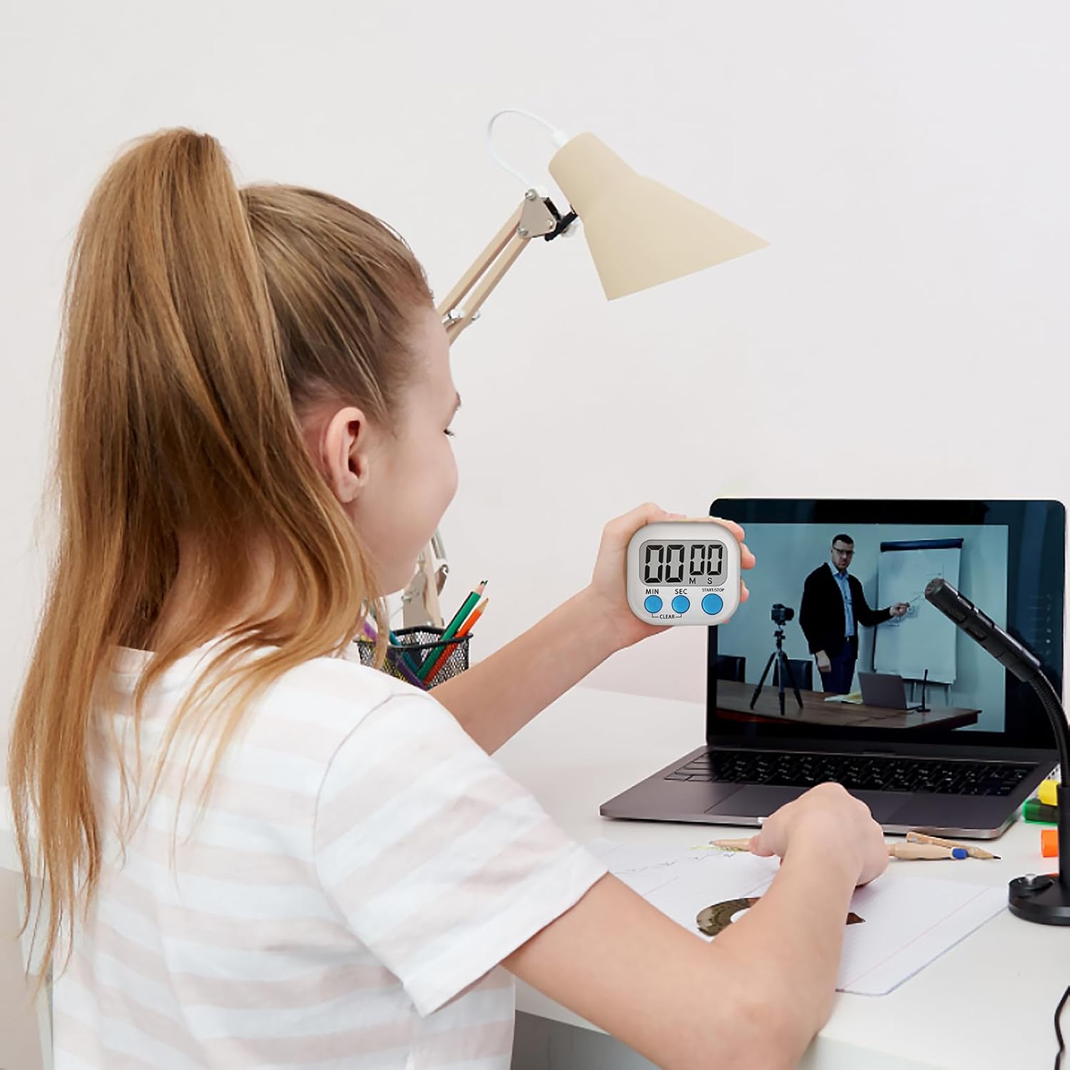 ZILLEEN Kitchen Timer Digital with Magnetic Back for Kids Classroom, White 6 Pack