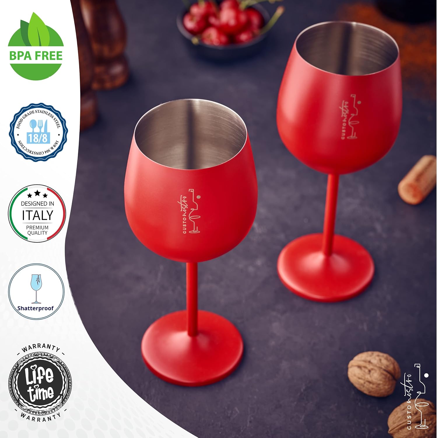 Gusto Nostro Stainless Steel Wine Glass - 18 oz - Cute, Red Unbreakable Wine Glasses for Travel, Camping and Pool - Fancy, Unique, Cool Portable Metal Wine Glass for Outdoor Events, Picnics (Set of 4)