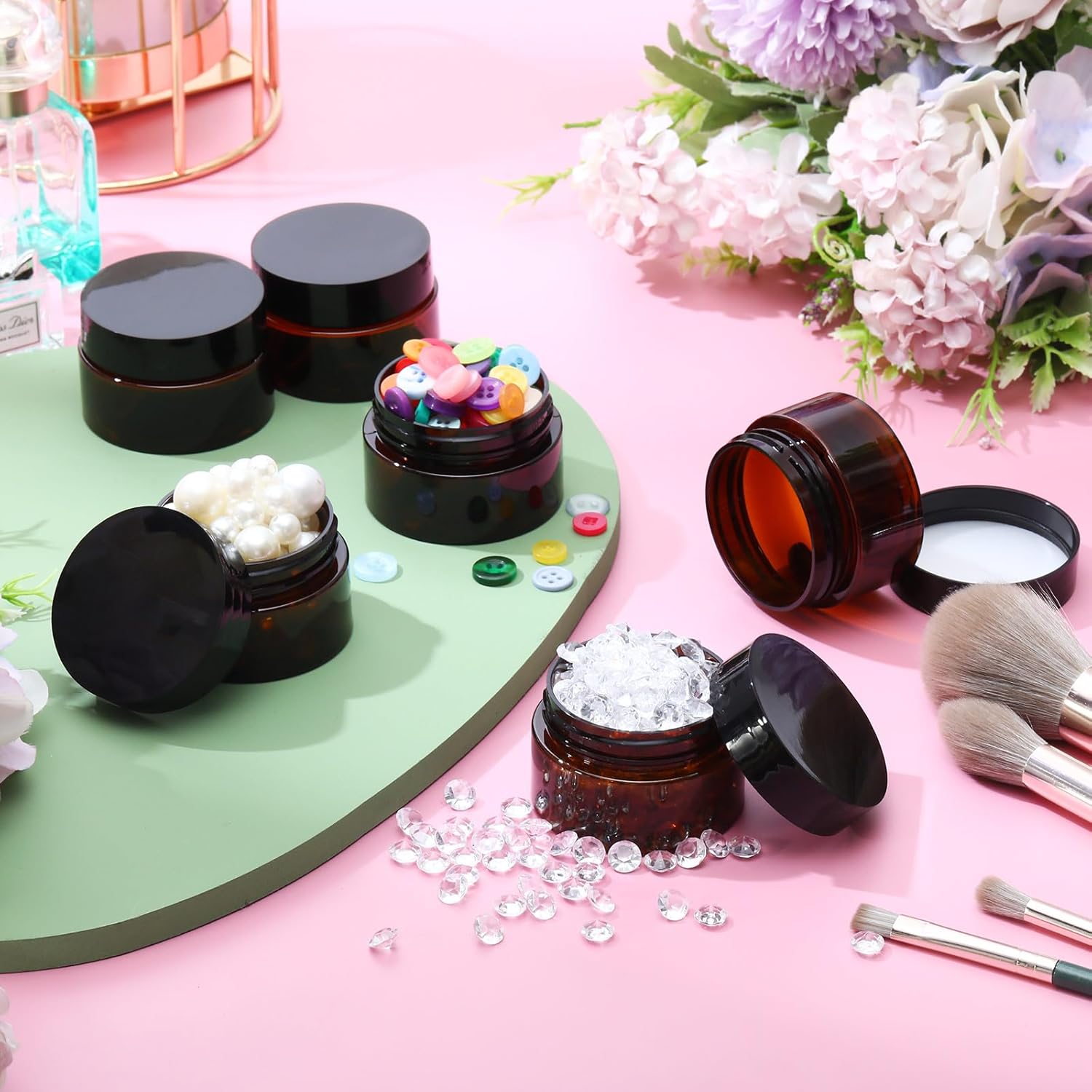SATINIOR 6 Pack 1 oz Plastic Jars Containers with Lids Wide-mouth Refillable Leakproof Reusable Round Empty Jars for Travel Cosmetic Dry Food Spice Candy Cookie Home Kitchen Organizing(Amber)