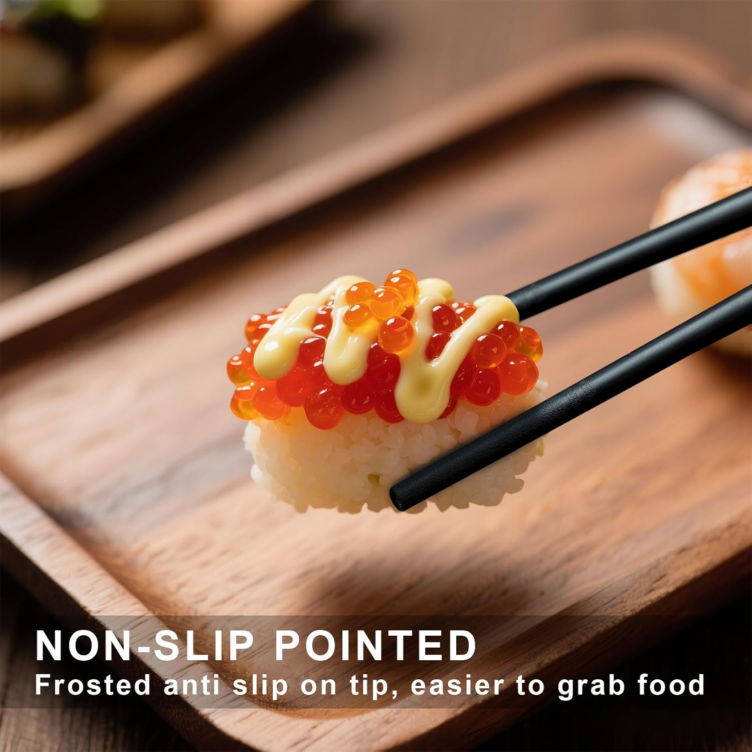 - 【Non-slip Design】Anti slip design for enhanced control. chopstick tip no-slip texture allow effortless handling of noodles, sushi, dumplings, and even delicate foods like tofu or leafy greens. which makes it easy to hold, and prevents food from falling off between your chopsticks, even for first-time users.