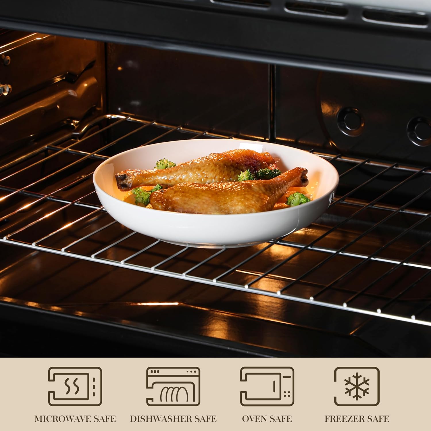 - 【WIDE & SHALLOW DESIGN】White Pasta Bowls featuring a wide and shallow design prevents spills and messes. Featuring a modern and minimalist design with a classic white finish and smooth glaze, these bowls complement any table setting and enhance dining experience.