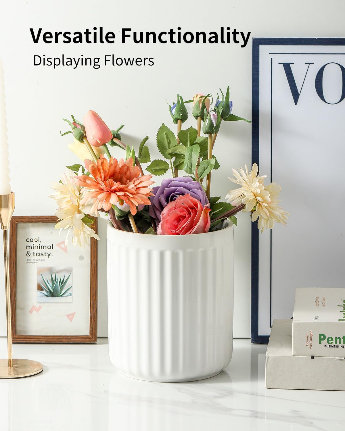 - Textured Elegance: This ceramic white utensil holder features a ribbed texture with lighter flecks, enhancing your kitchen decor and adding a tactile touch that enriches your countertop’s charm