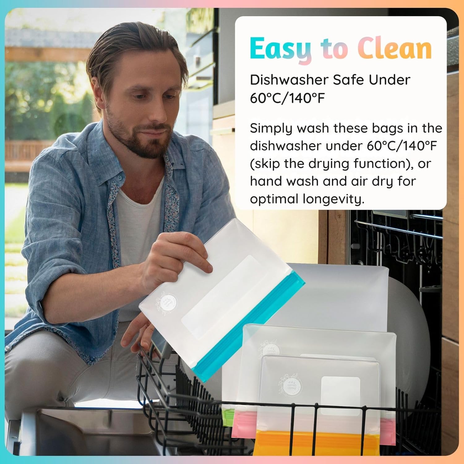 - ❄️ Built to Last: Freezer, Dishwasher & Travel-Friendly: Designed to withstand freezing temperatures, thawing, and daily use, these silicone bags are incredibly resilient. Dishwasher safe for easy cleaning, but hand washing and air drying will extend their lifespan even further.