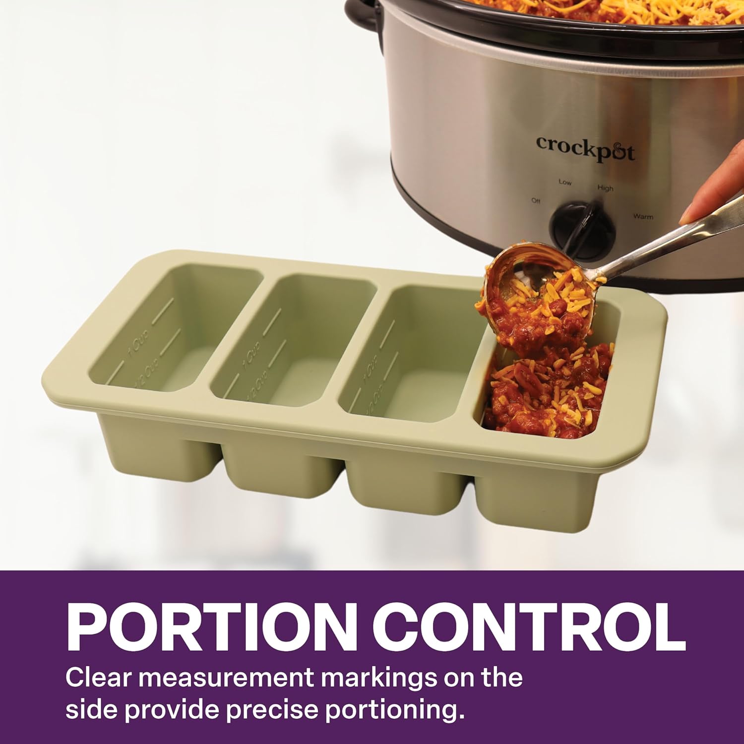 Silicone Freezer Tray with Clear Lid, 4 Compartments with 1 Cup Capacity Each, Large Ice Cube Molds, Microwave and Dishwasher Safe, for Freezing Soup, Sauce, Broth, etc. Sage Green