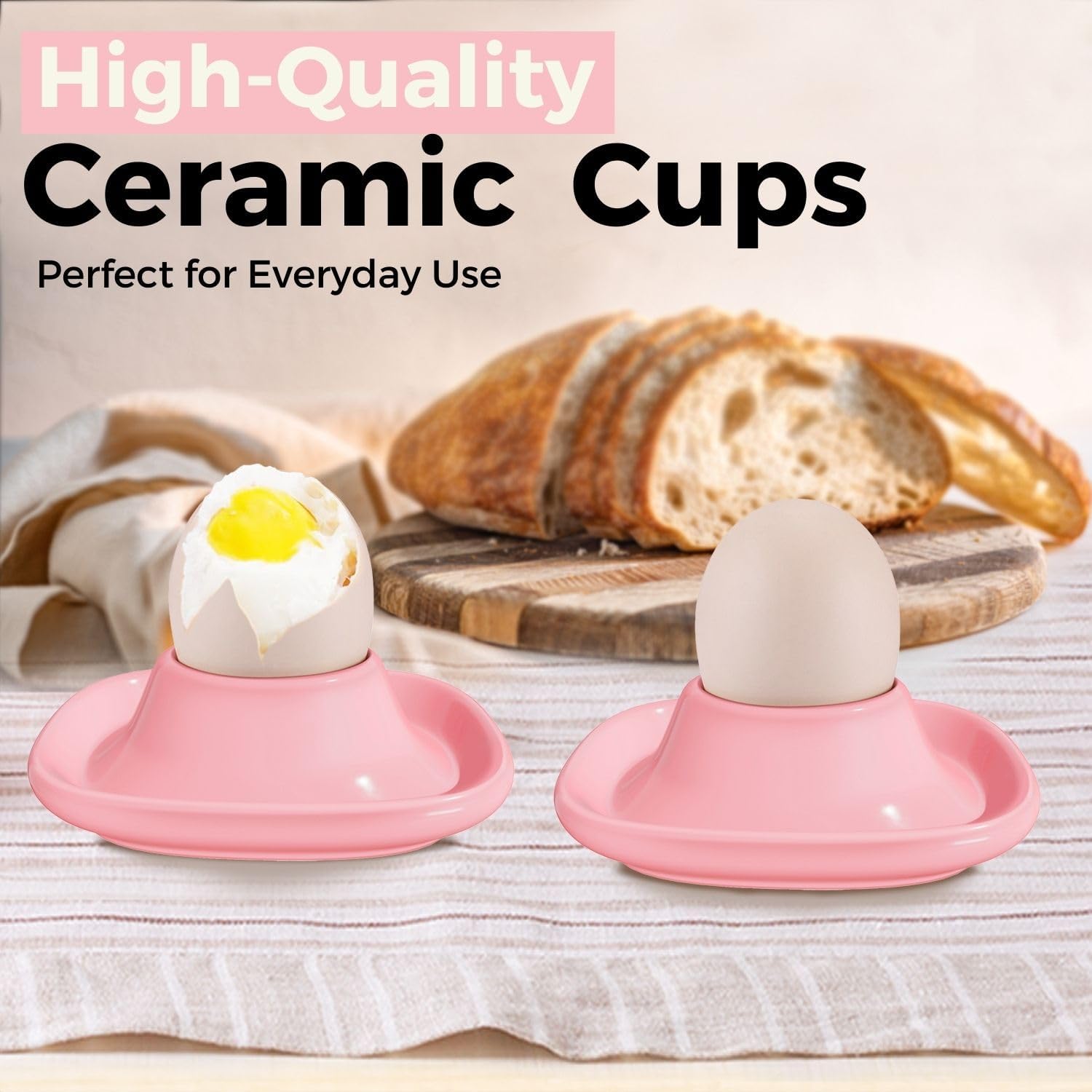 Flexzion Egg Cups for Soft Boiled Eggs - Set of 6 Ceramic Egg Holder - Stackable Egg Coddler Cups with Base for Serving, Breakfast, Brunch - Kitchen Table Decor, Pink